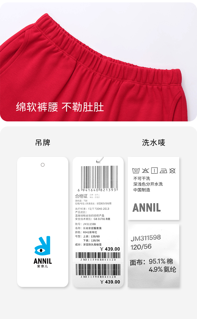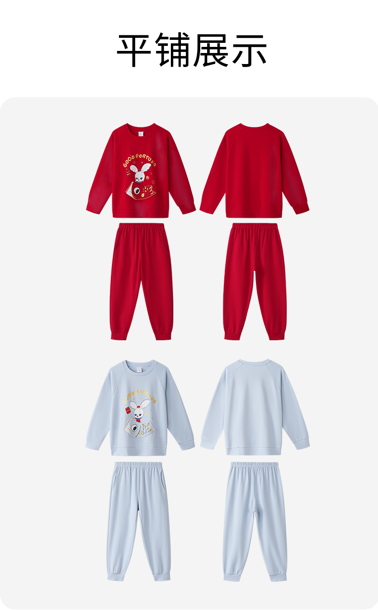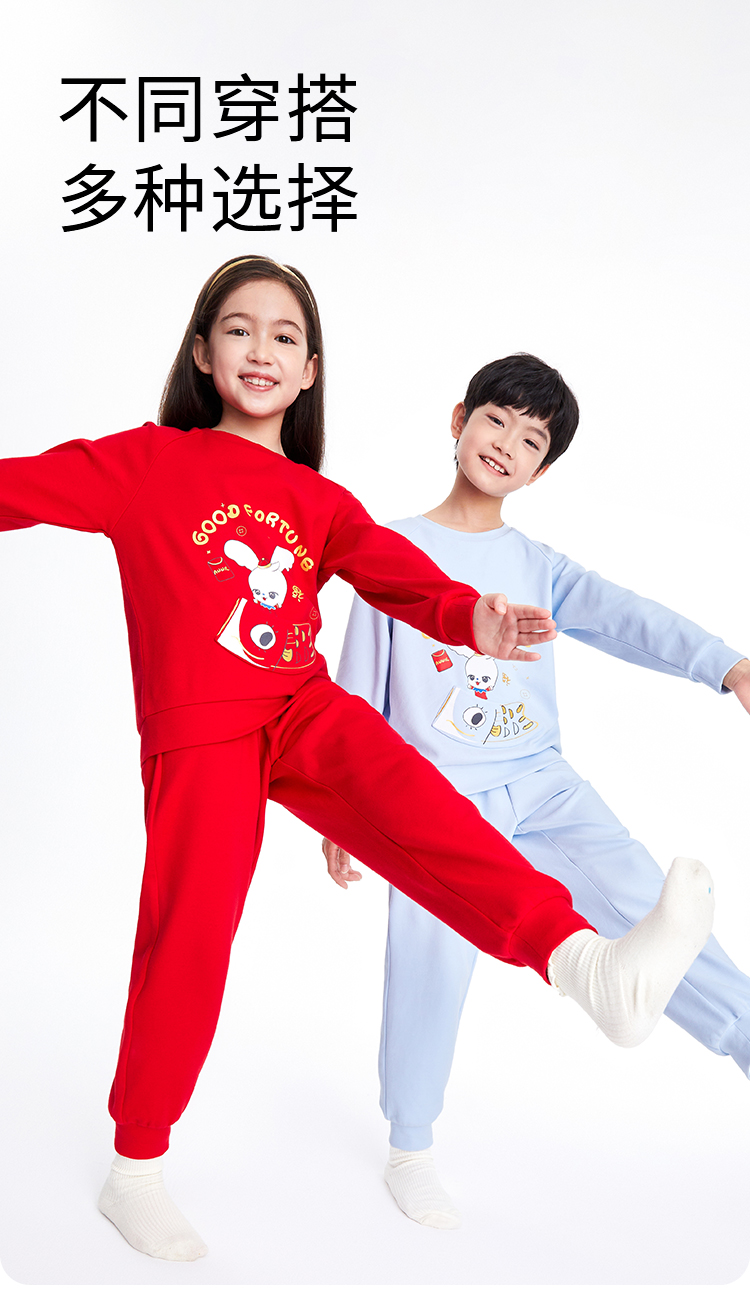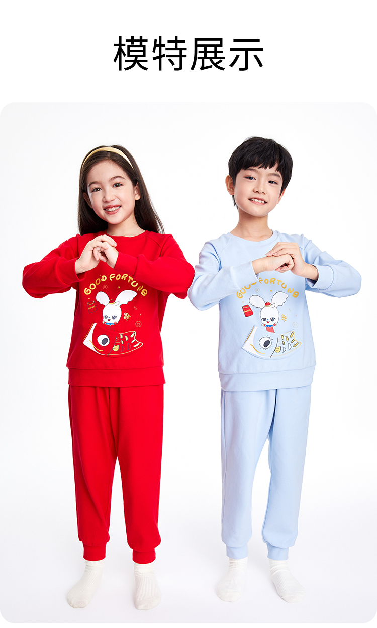 男童女童长袖家居服套装红色拜年服安奈儿童装JM311598