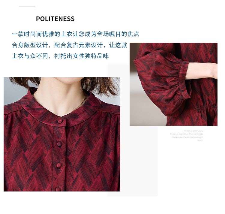 AHM yqwl5518气质简约时尚减龄显瘦优雅国风衬衫 商品图3