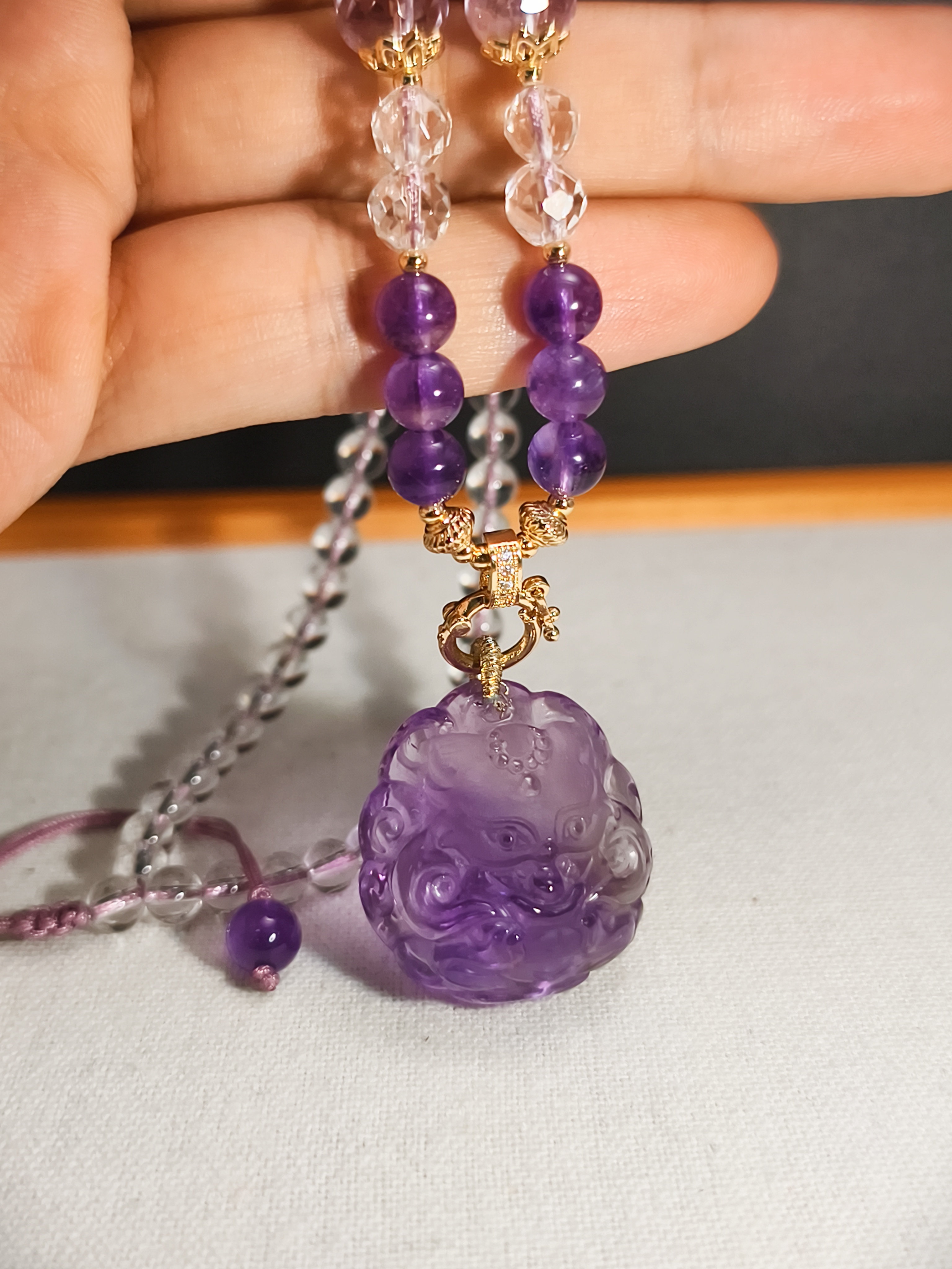 紫水晶元宝狐狸吊坠