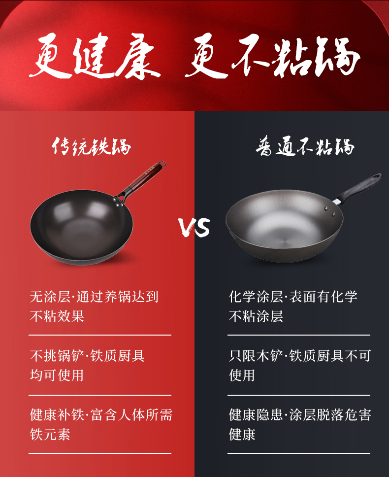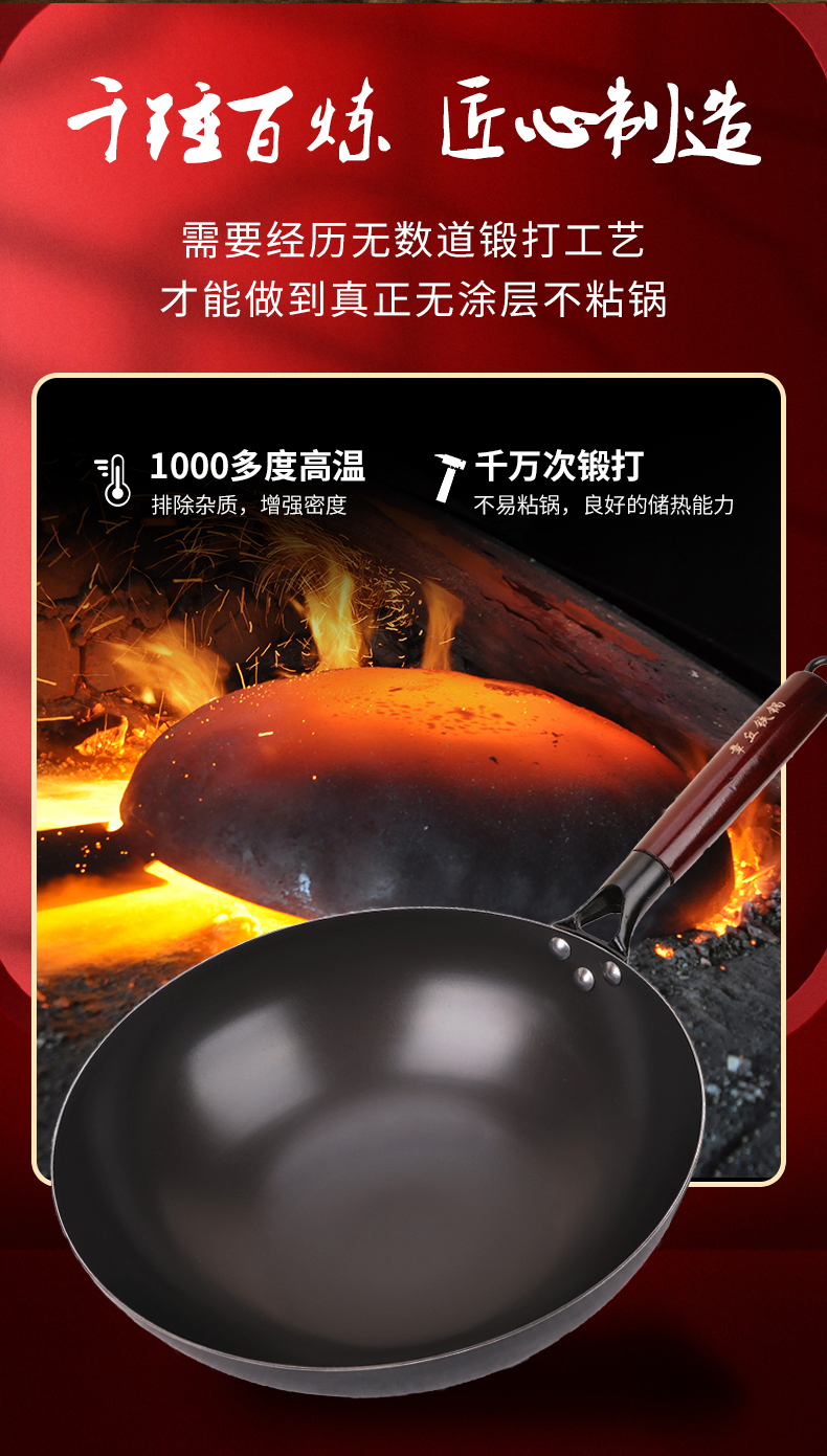 【3年免费换新】章丘铁锅升级木把铁锅 无涂层炒菜 锅加盖 非遗传承 不粘锅 不生锈 送锅盖 免费开锅 锻打36000锤