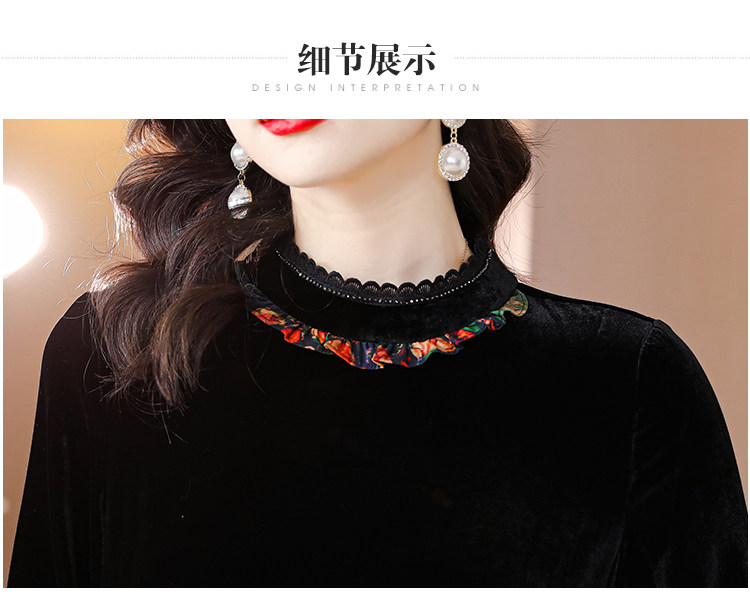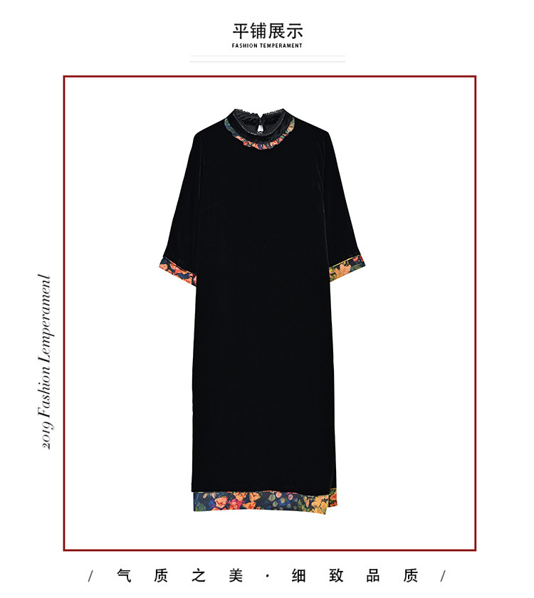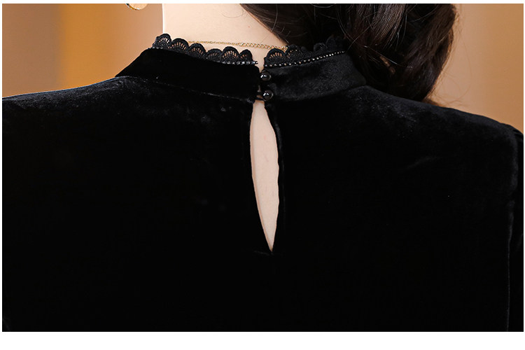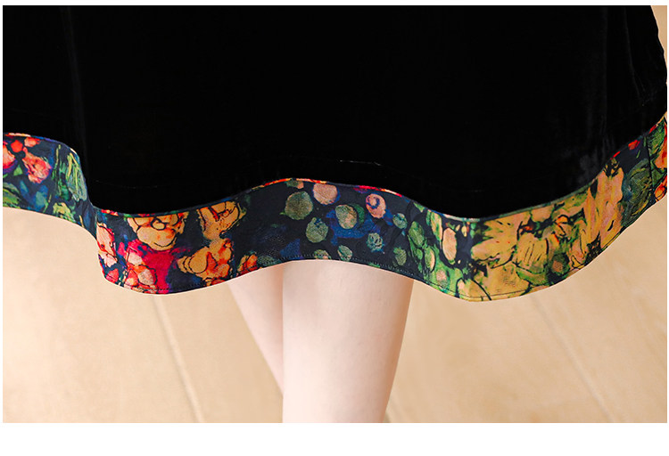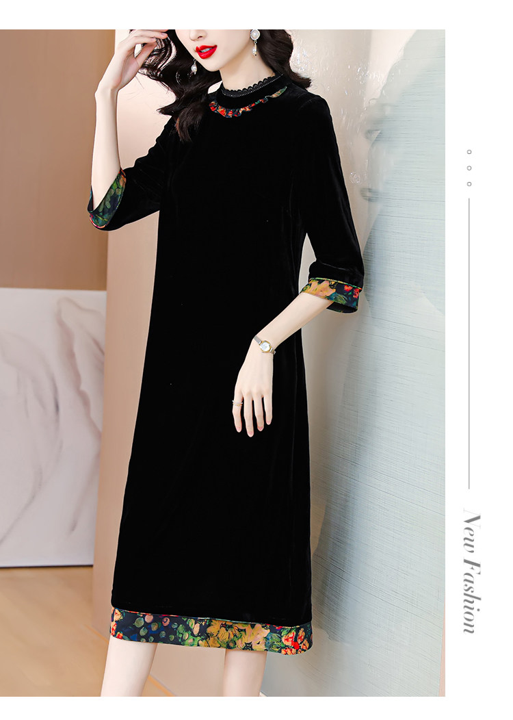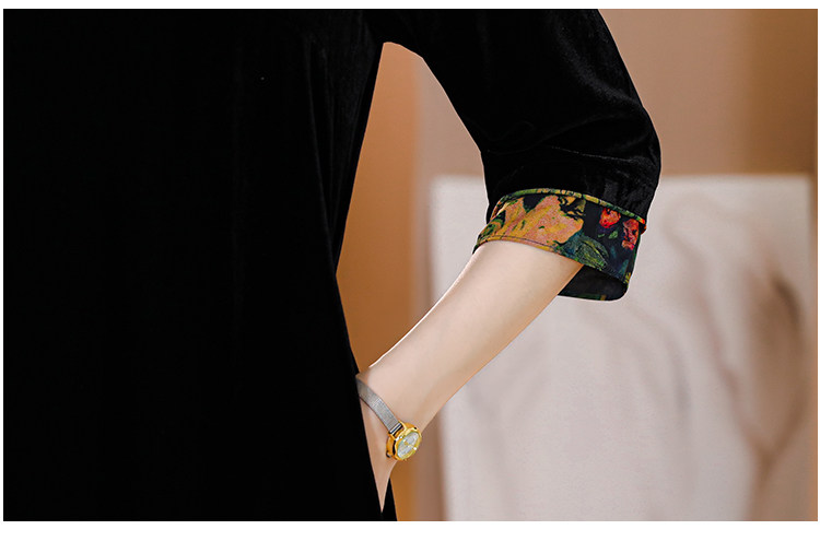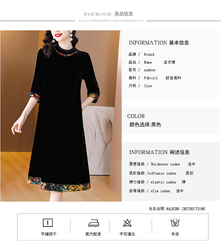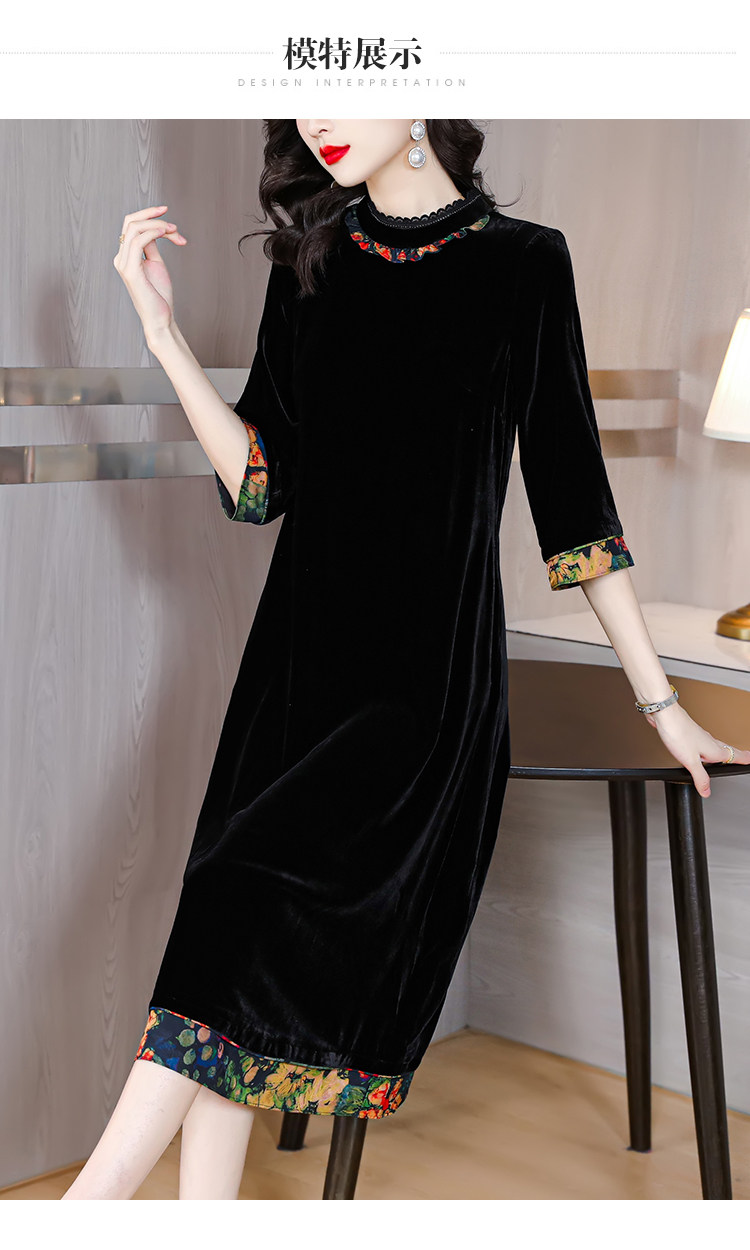 春秋新款2025贵夫人阔太太黑色金丝绒拼接连衣裙女