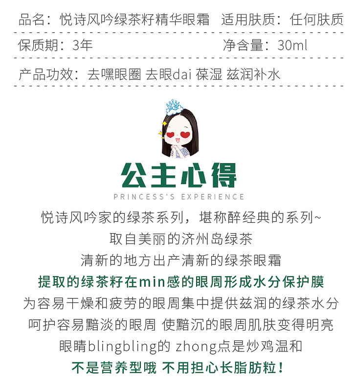 悦诗风吟保湿锁水绿茶籽精华眼霜 30ml(244525)
