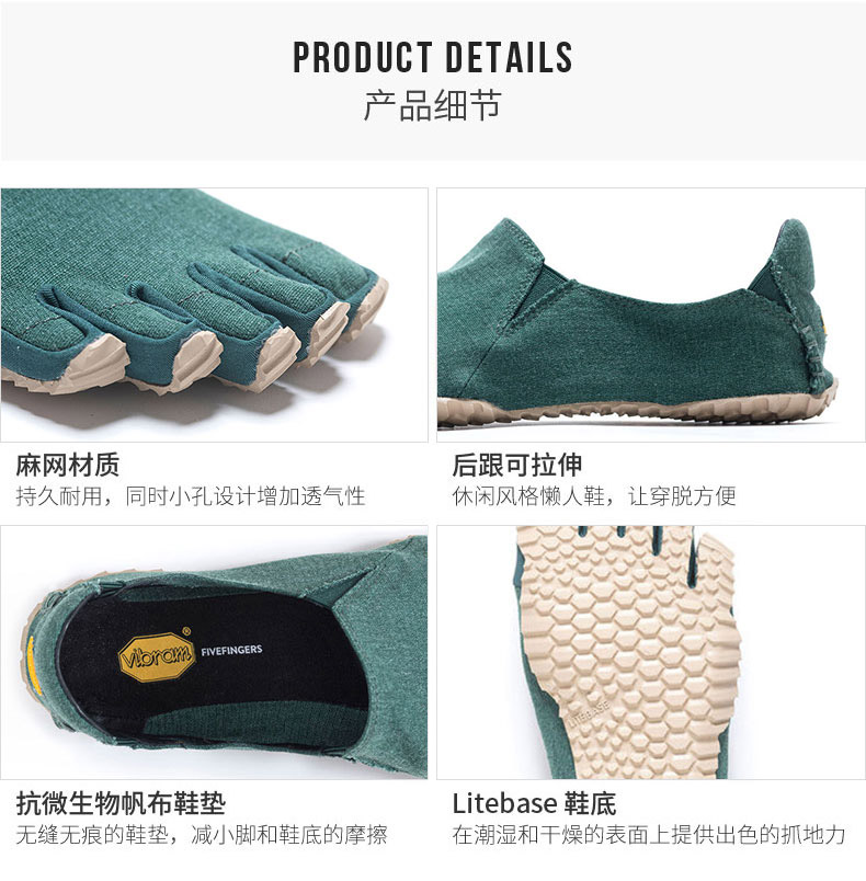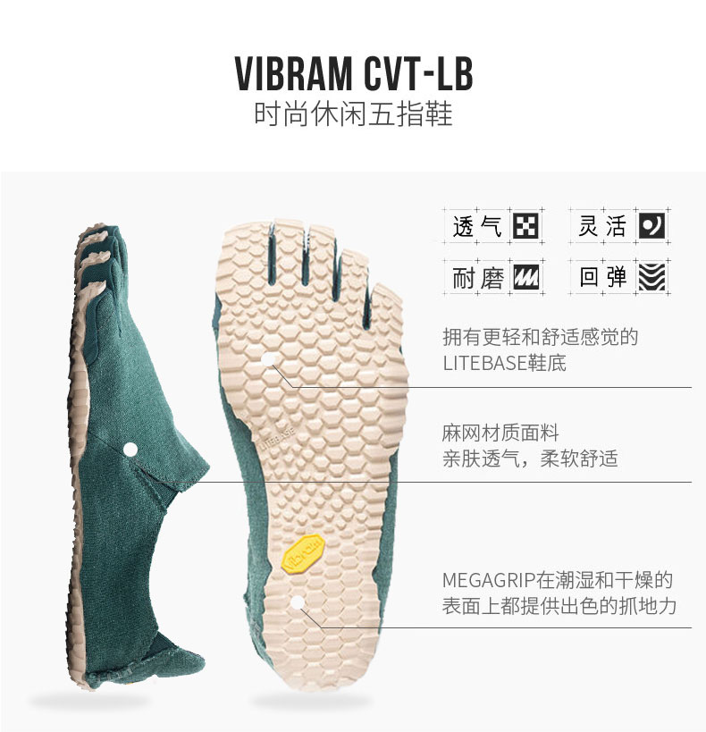 vibram新款 男五指鞋 LITEBASE轻科技透气棉麻休闲一脚蹬CVTLB