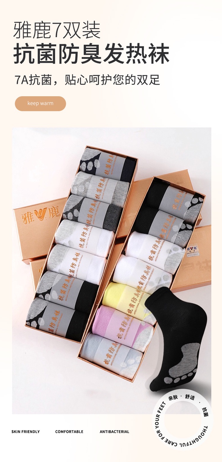 雅鹿七双装抗菌防臭发热袜(浙江仓)