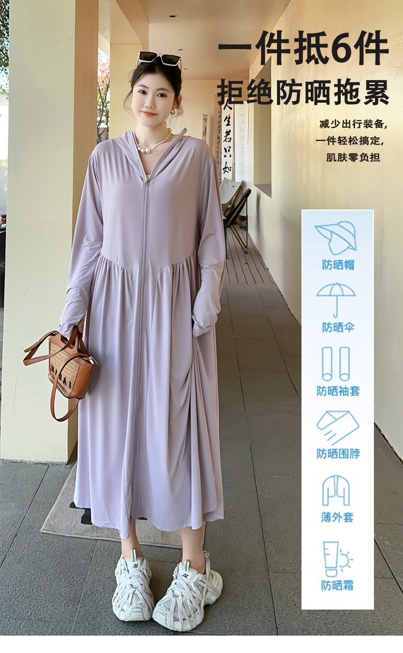 丁摩 防晒衣女款新款加大码防紫外线长款全身防晒服冰丝透气防晒外套薄6ZF-22525