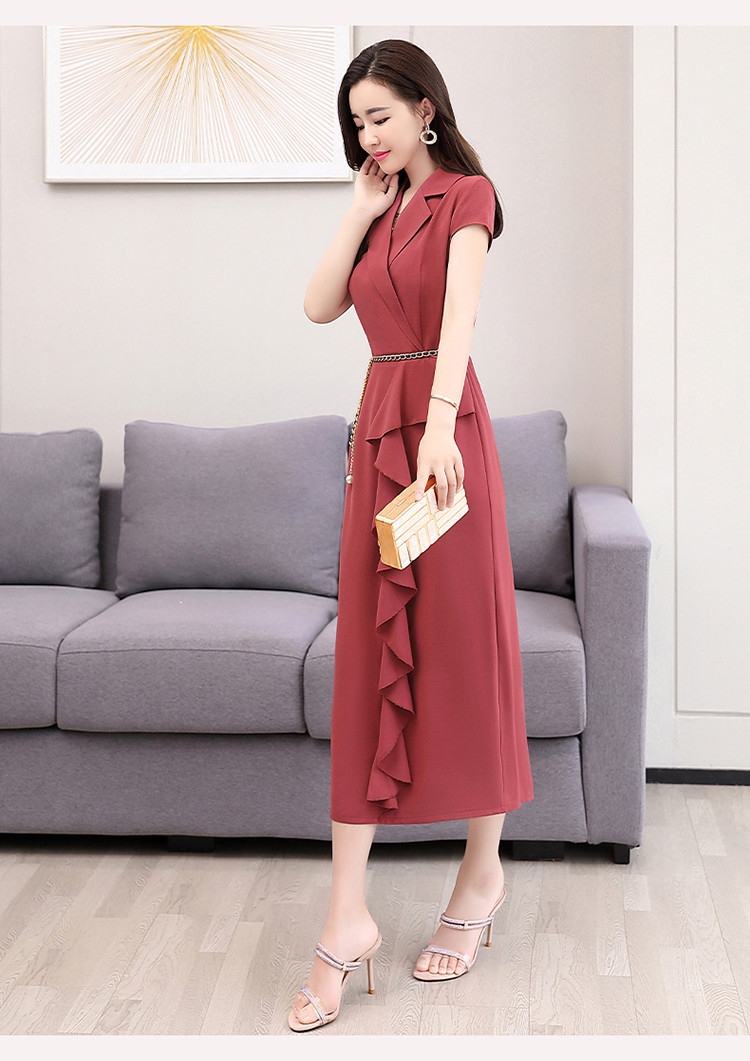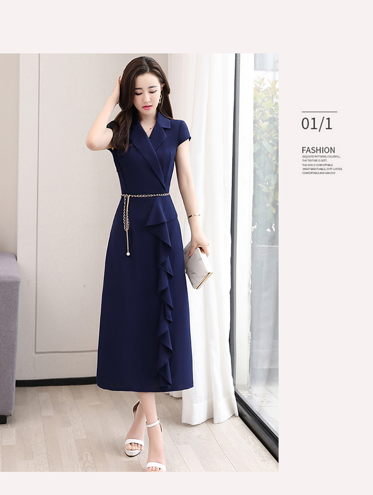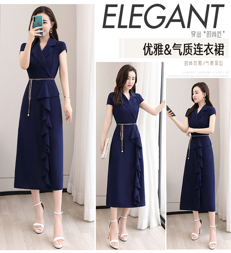WZNH-OKYZ1828夏季OLO领收腰韩版A字裙短袖时尚气质优雅连衣裙