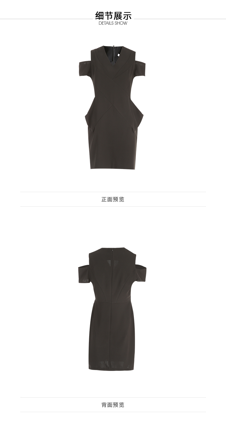 转款下架-VIMAGE纬漫纪夏季新款V领时尚OL漏肩通勤气质修身显瘦连衣裙V2107761