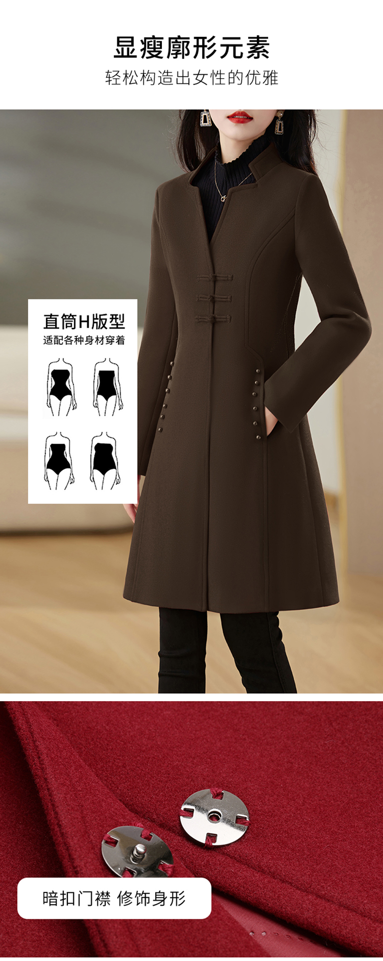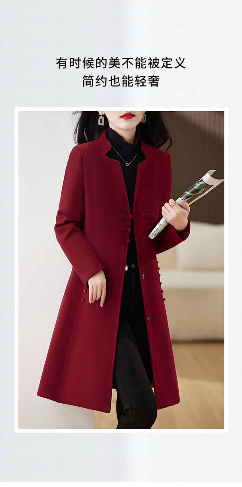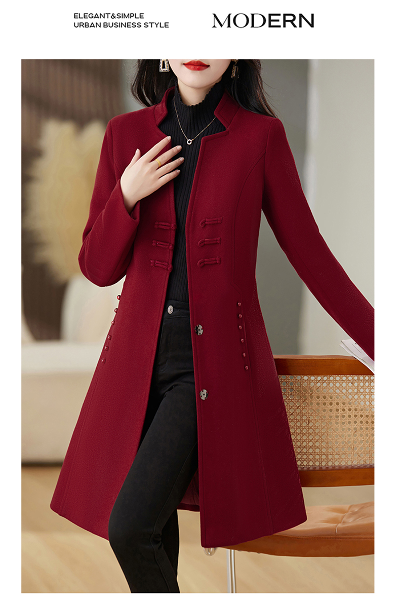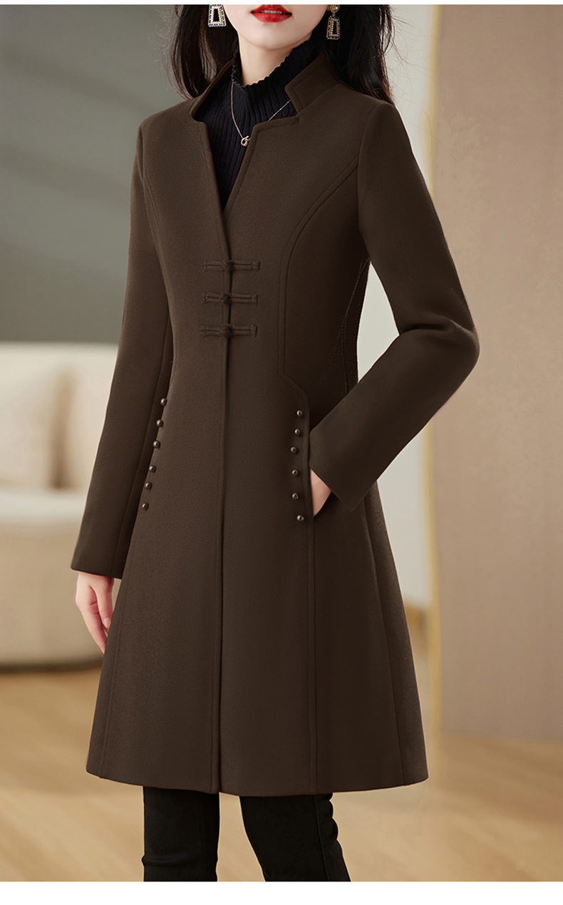 毛呢外套,新款中式盘扣秋冬加棉高级时尚百搭大衣外套HR-JXYR8271