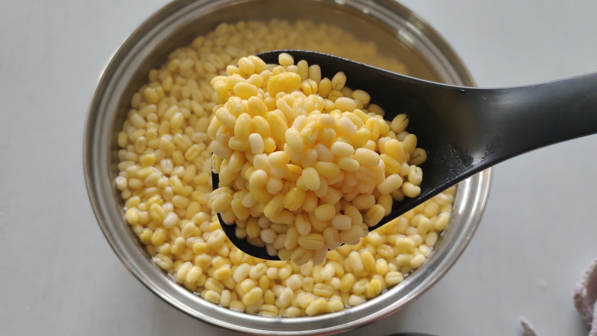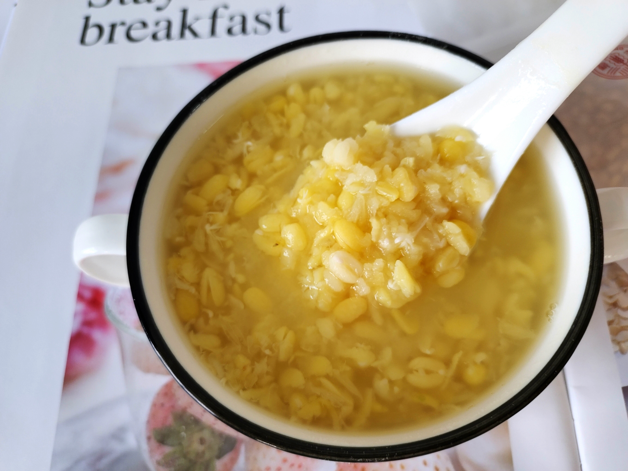 2.脱皮绿豆,在煮前浸泡2-3小时,才易软糯;浸泡后,豆质变软、豆粒变大,是正常现象。
