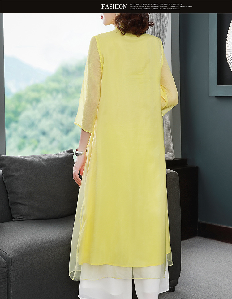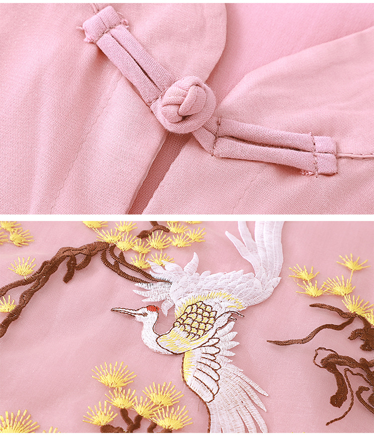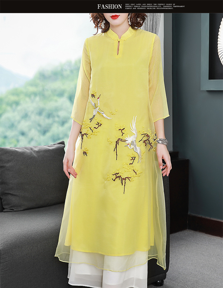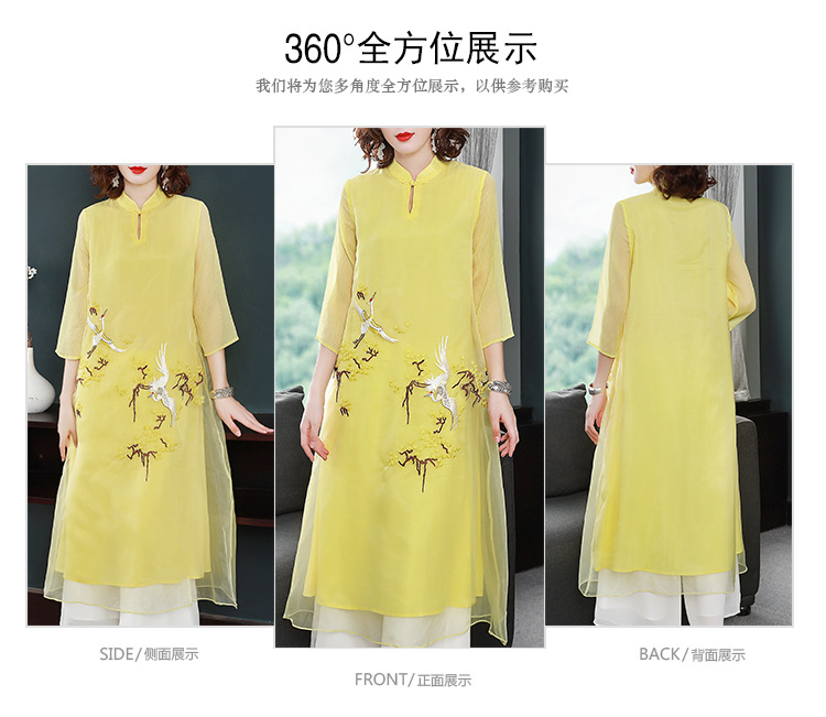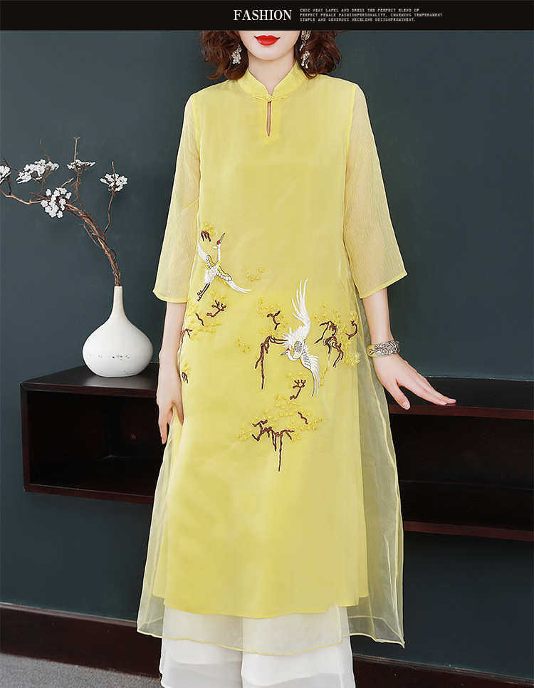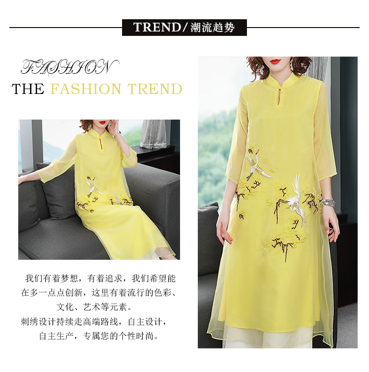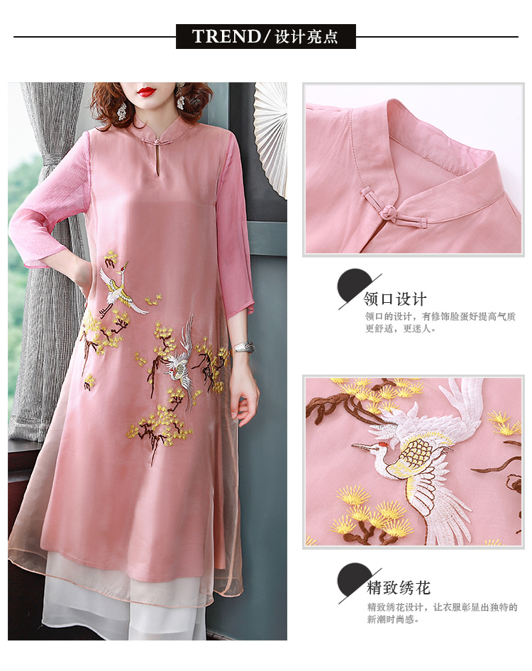 SM-SM191007新款时尚改良旗袍领七分袖中长款刺绣绣花连衣裙