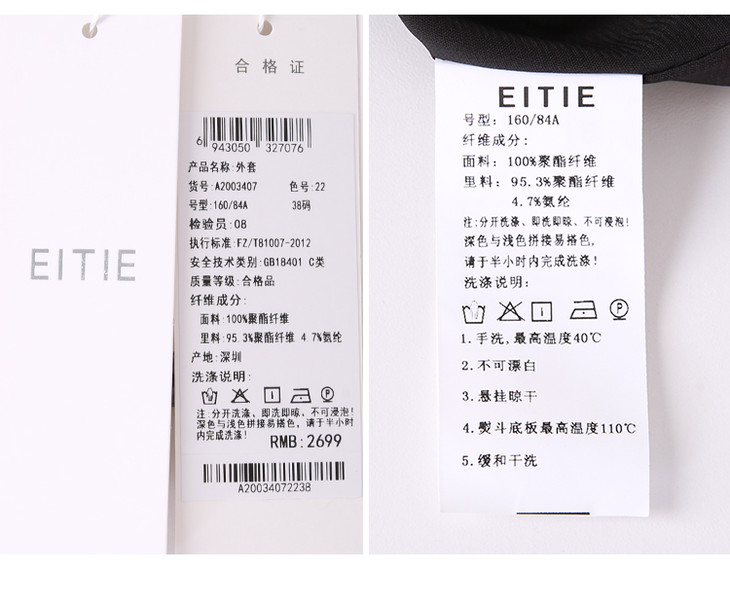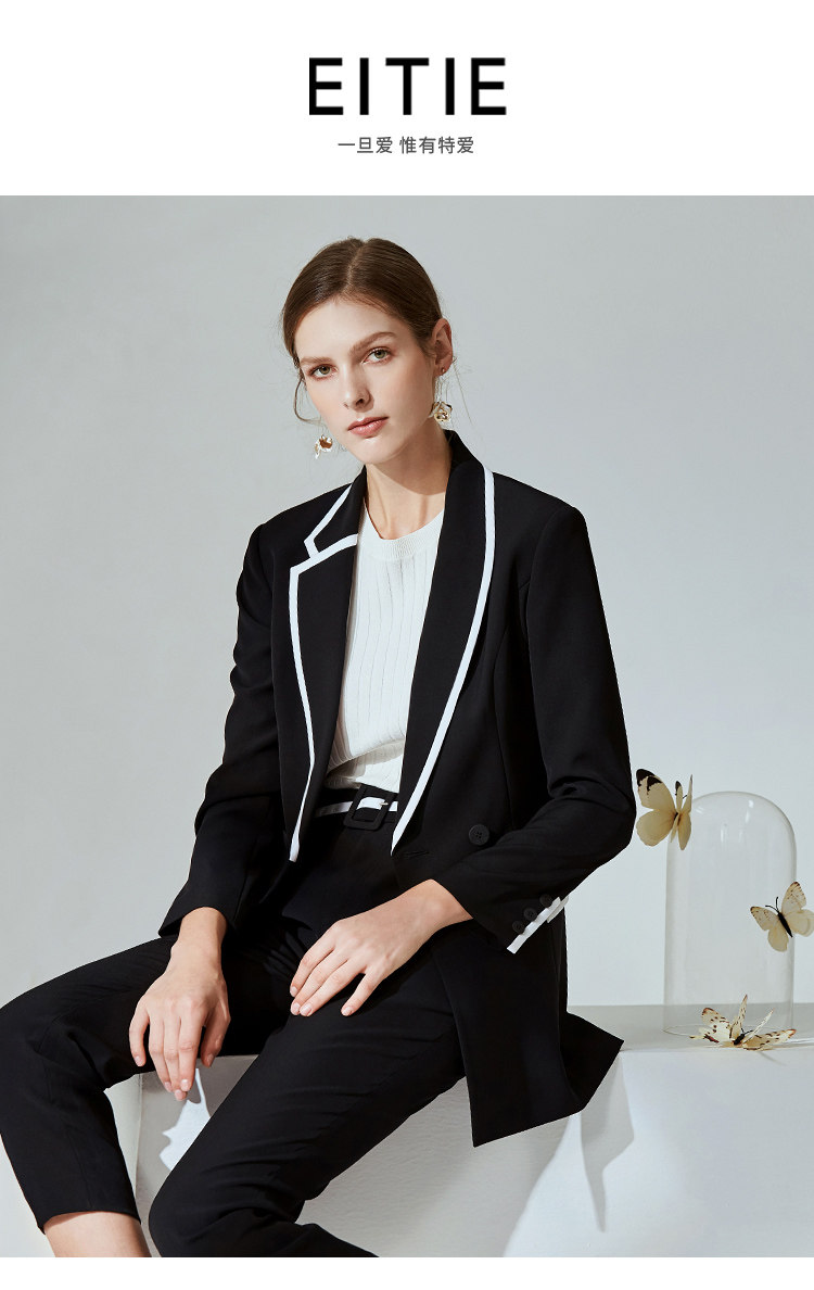 下架-EITIE爱特爱春季新款时尚通勤干练职业翻领西装短外套女显瘦A2003407
