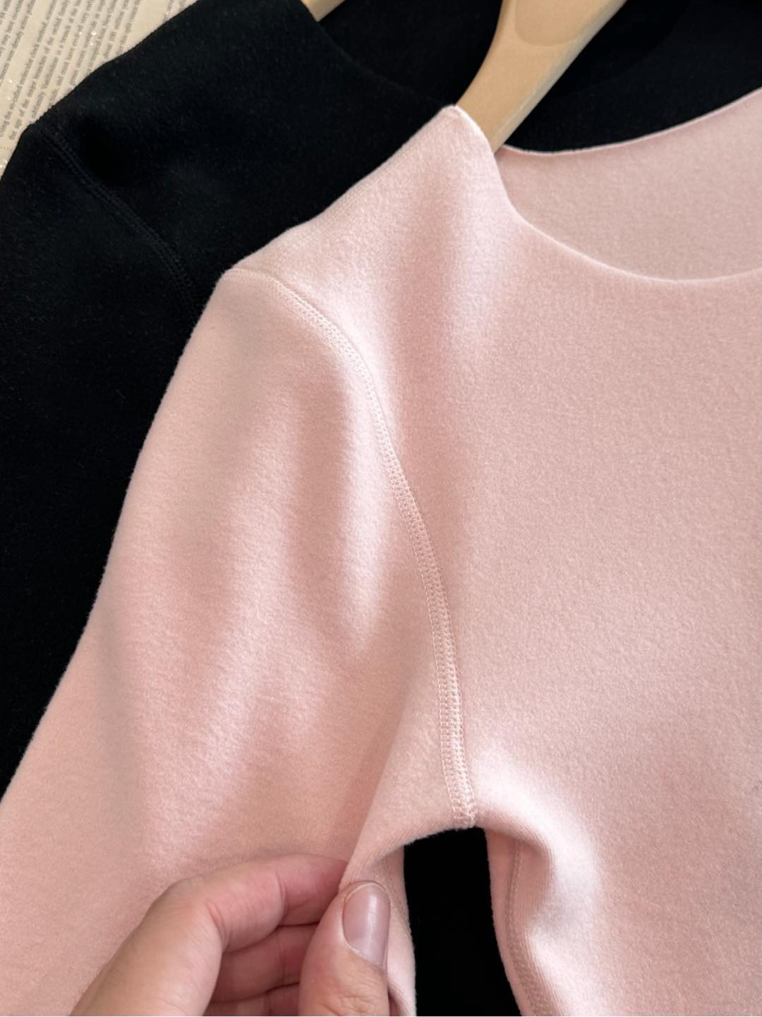 双面磨毛,面料采用AK WARMO 热循环技术,通过捕捉皮肤表层蒸发的水分子,将身体产生的湿气持续转换成热能,达到吸湿发热,循环锁温的目的。