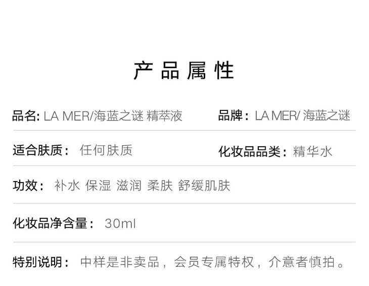 幸好,海蓝之谜很懂我们,精粹水加入了皮肤调理成分,有辛甘醇、软毛松藻、海盐等......