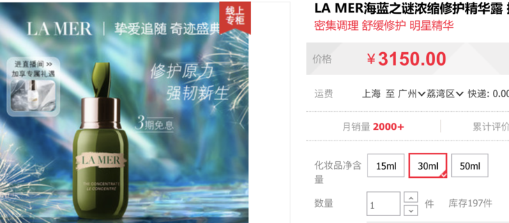 它有多好用?销量就是至好的证明,精粹水一直是海蓝之谜的金字招牌,稳居旗舰店榜首!