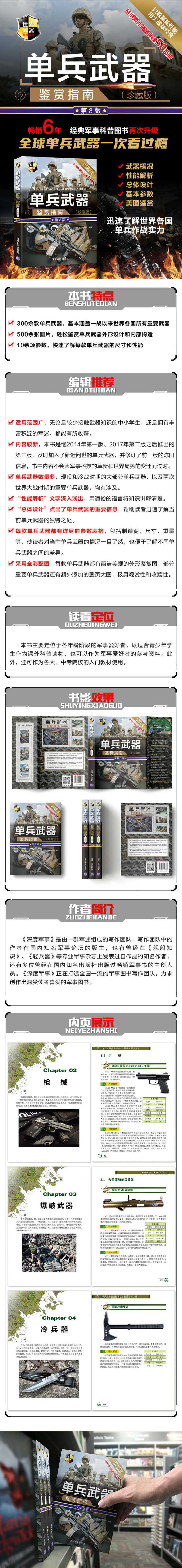 内容较新,本书是继2014年一版、2017年第二版之后推出的第三版,及时加入了新近问世的单兵武器,并修订了前一版的陈旧信息,书中内容不会因军事科技的革新和世界局势的变迁而过时。