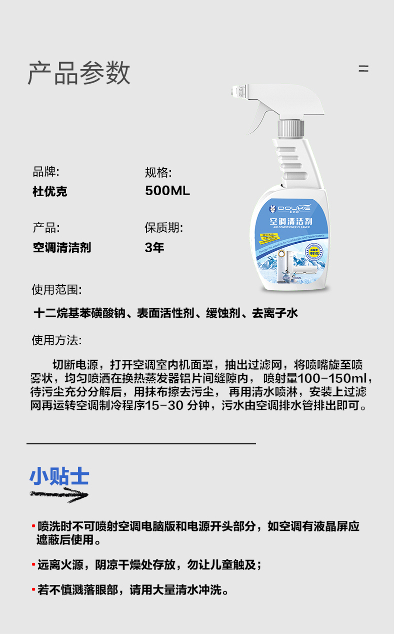 【清新清净舒适如家】杜优克空调清洗剂无需拆卸一喷一擦就干净适合所有空调高性价比