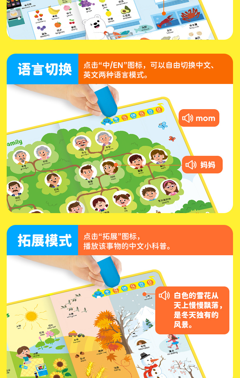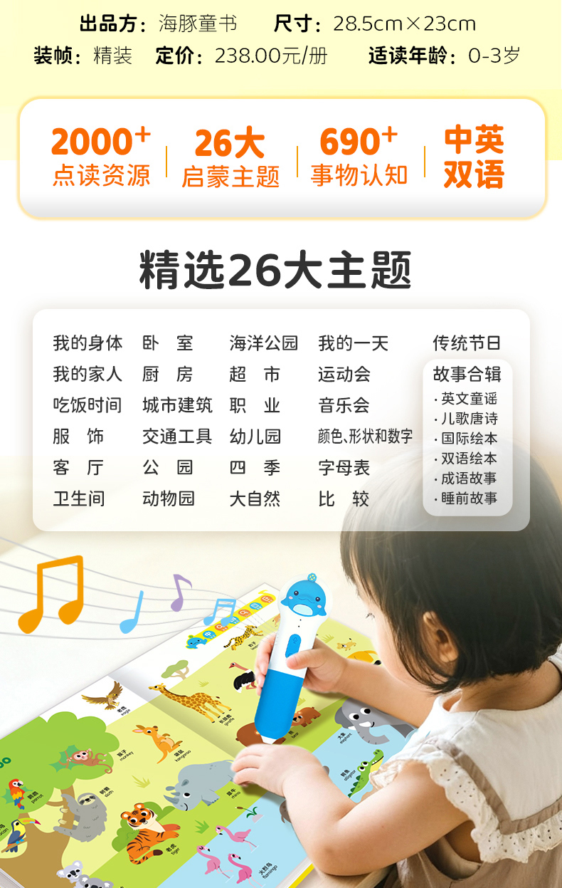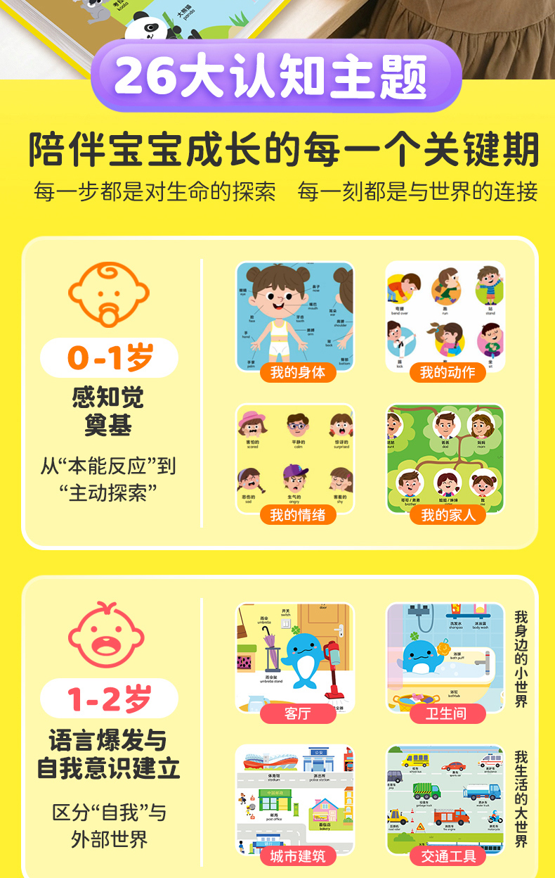 【点读版】 豚小蒙双语启蒙认知大百科0-3岁幼儿宝宝中英双语早教启蒙点读绘本我的身体我的家人逻辑思维启蒙