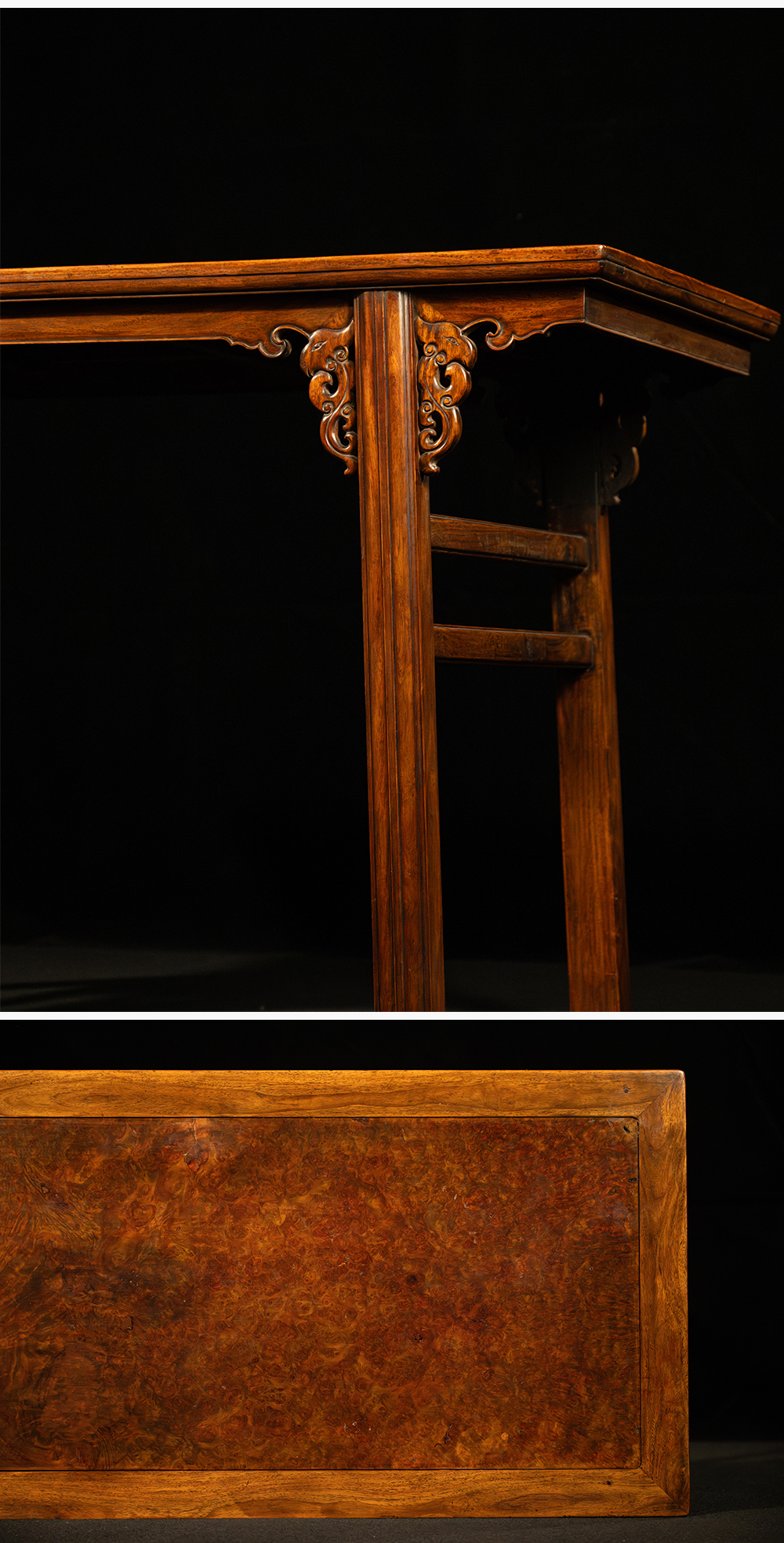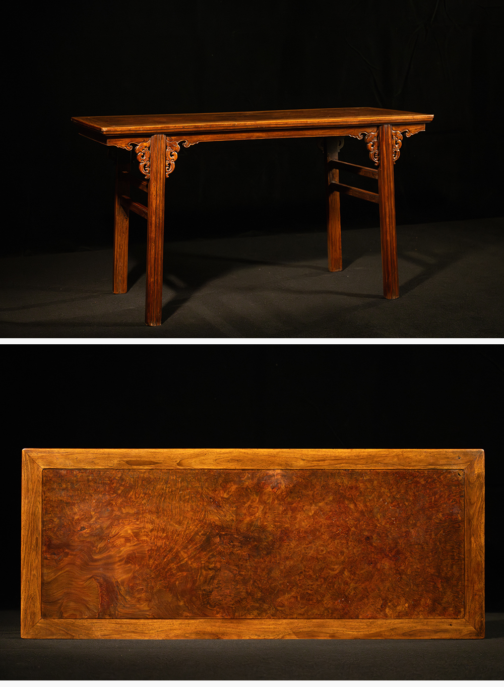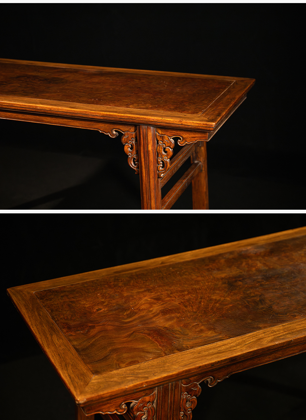 清 黄花梨镶瘿木夹头榫凤纹画案