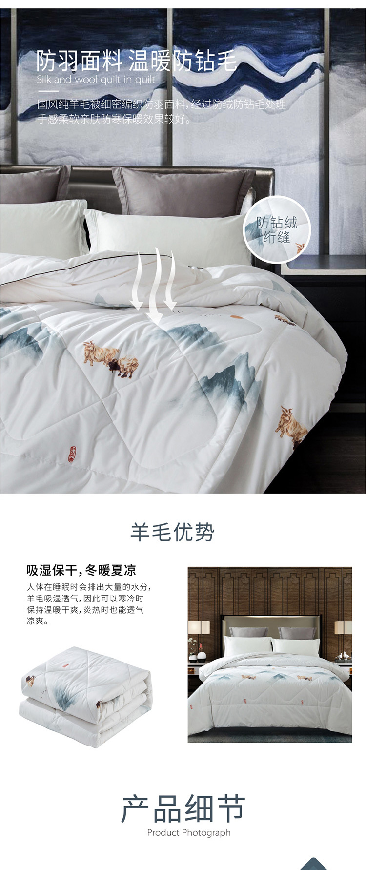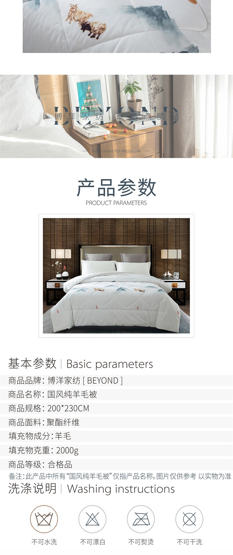 博洋家纺 国风纯羊毛被 200*230cm