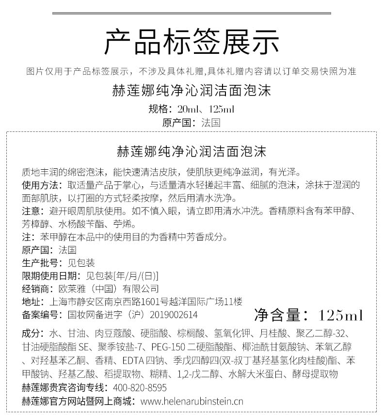 专柜680 赫莲娜HR氨基酸慕斯洁面泡沫125ml