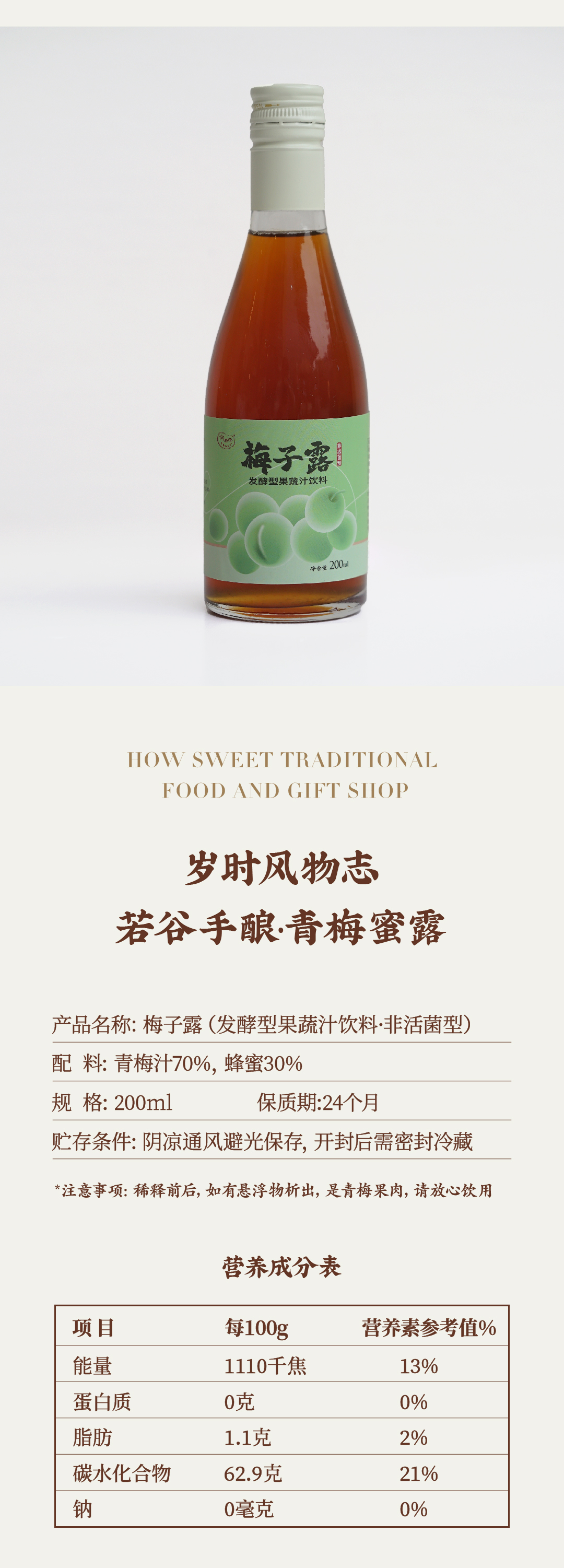 无添加梅子露自然青梅蜂蜜发酵 调水天然解腻