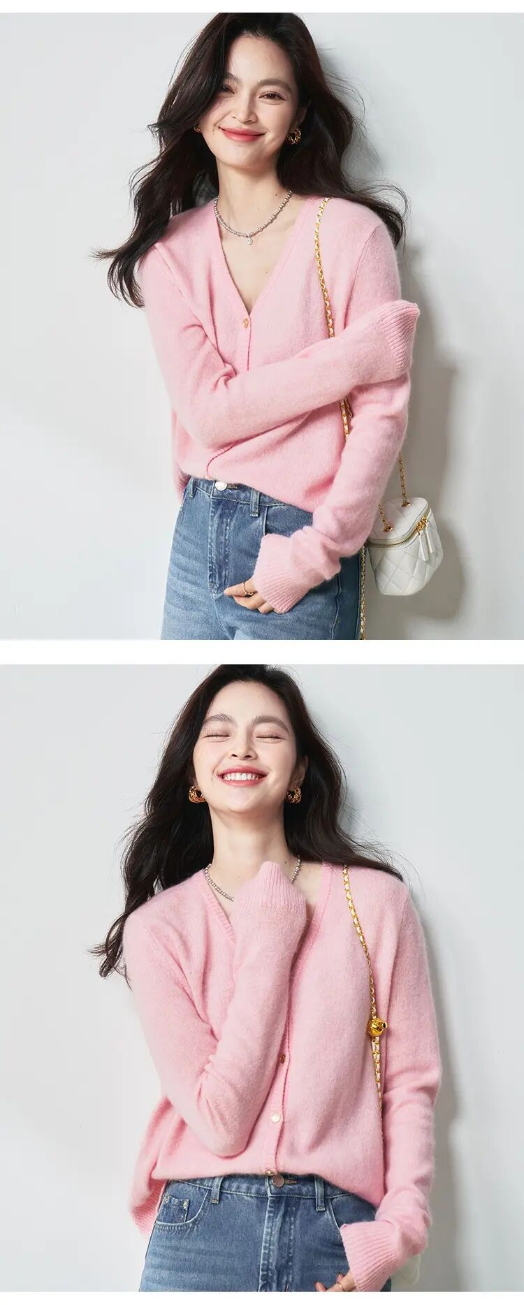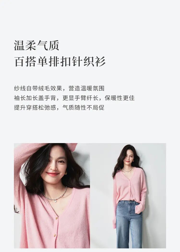 【高货sh】全新升级【铂金会员312/天猫419/差价107】(15142) 洛诗琳25春季羊毛V领针织开衫软糯轻肤简约氛围感毛衣