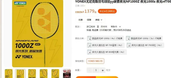 尤尼家JP版1000ZZ闪电黄羽毛球拍