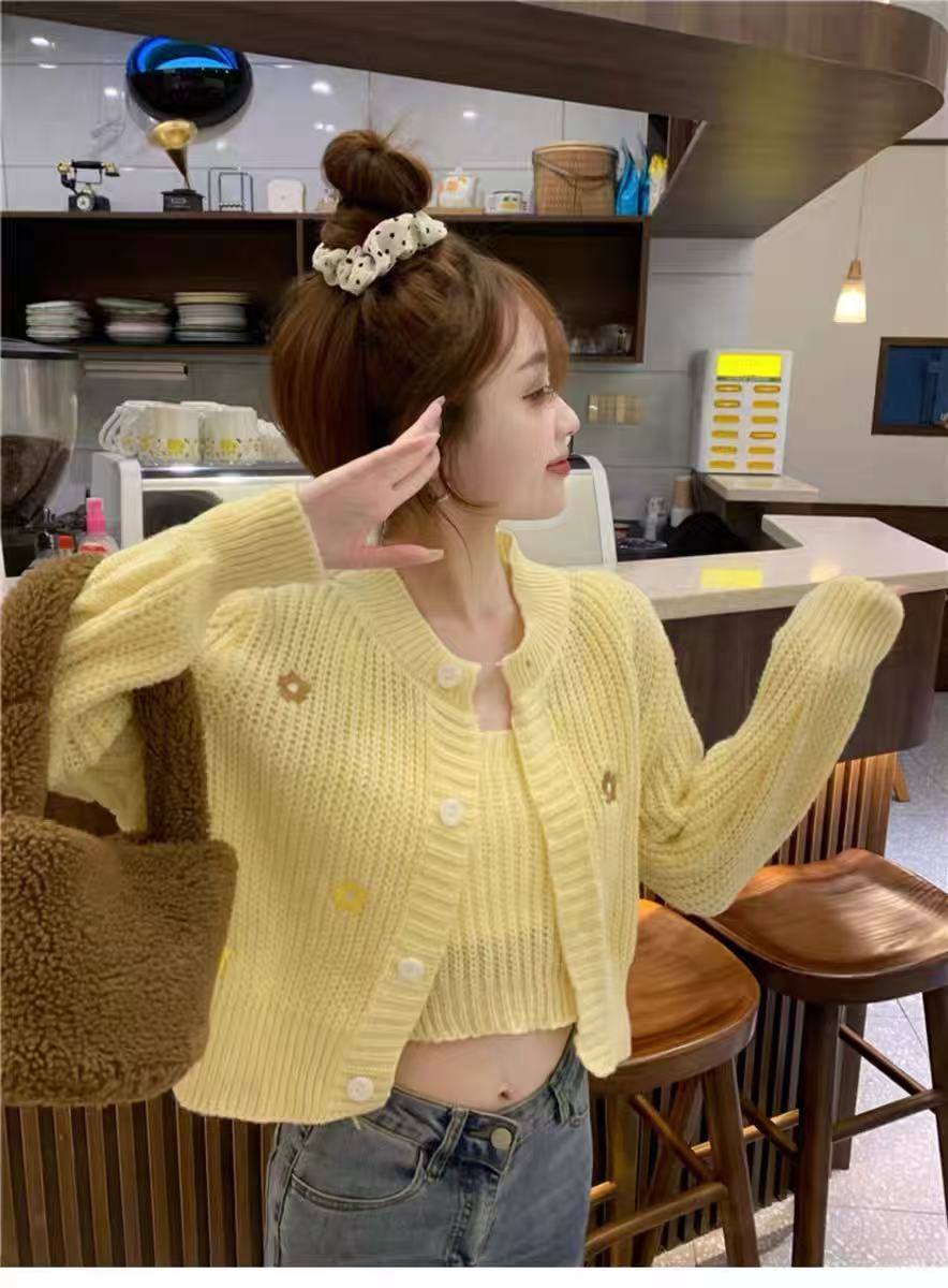 【孤品捡漏】微脏G03鹅黄两件套针织衫套装-喜出