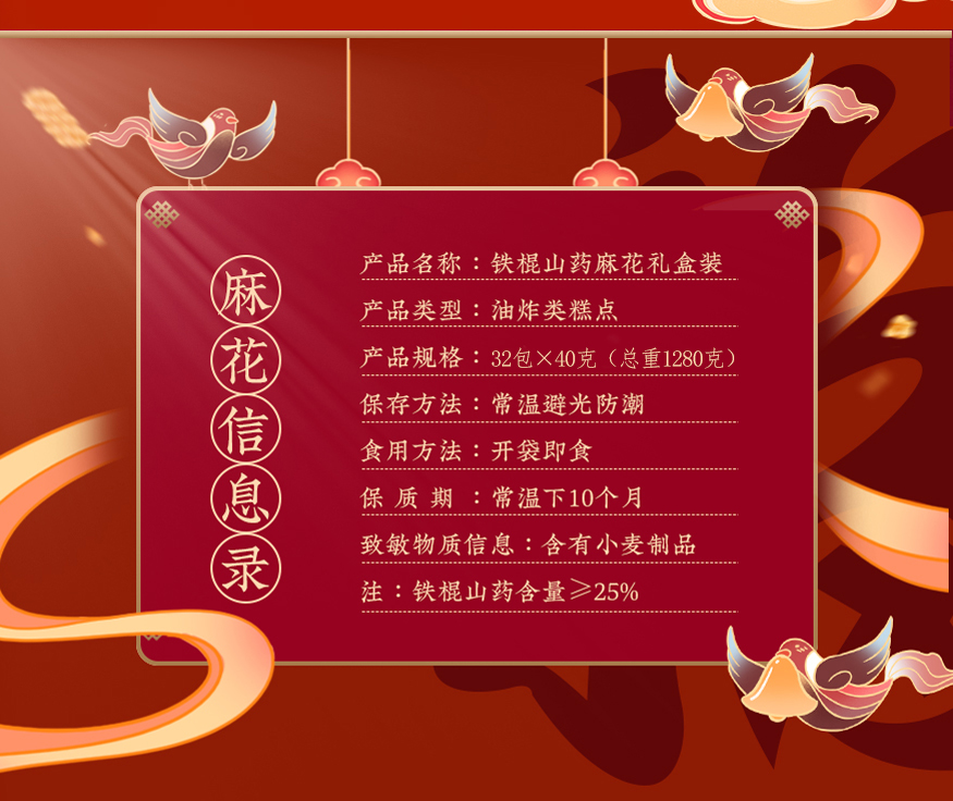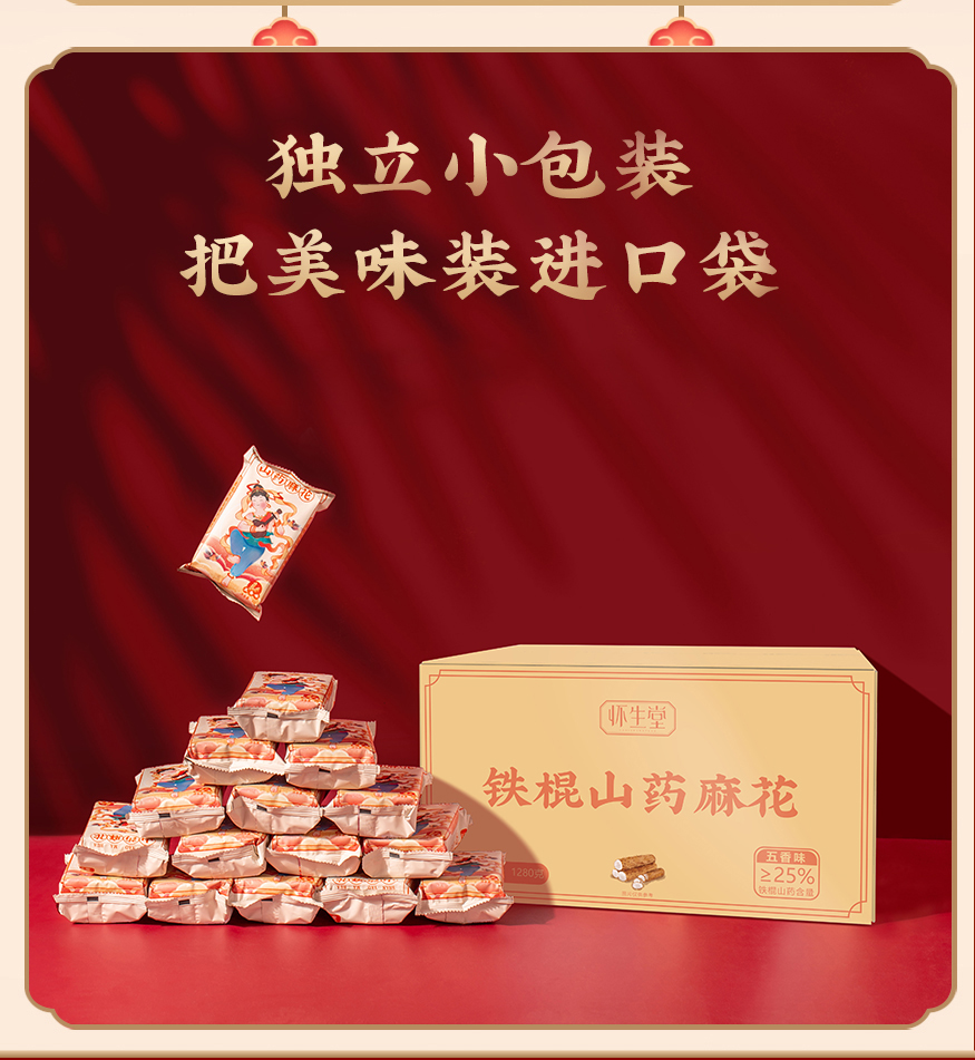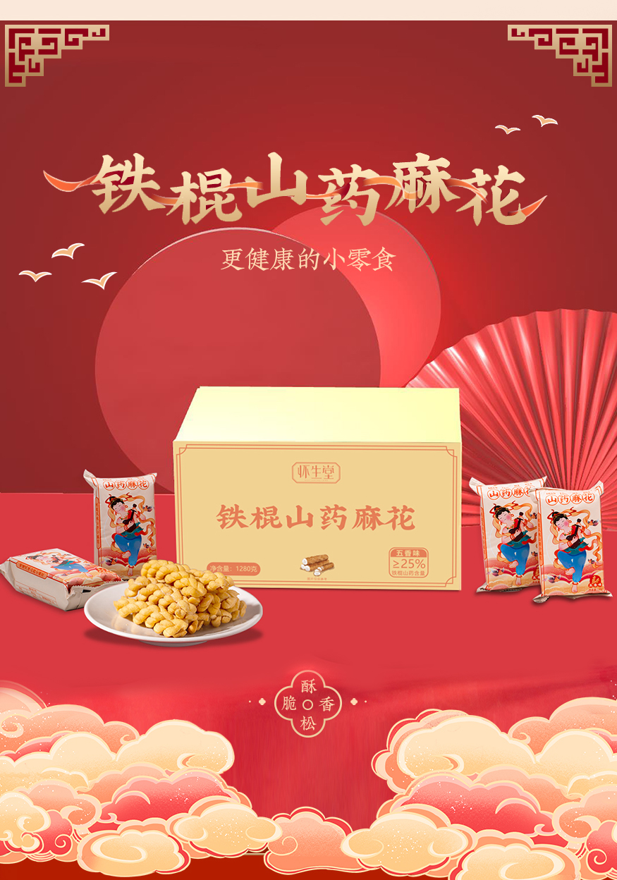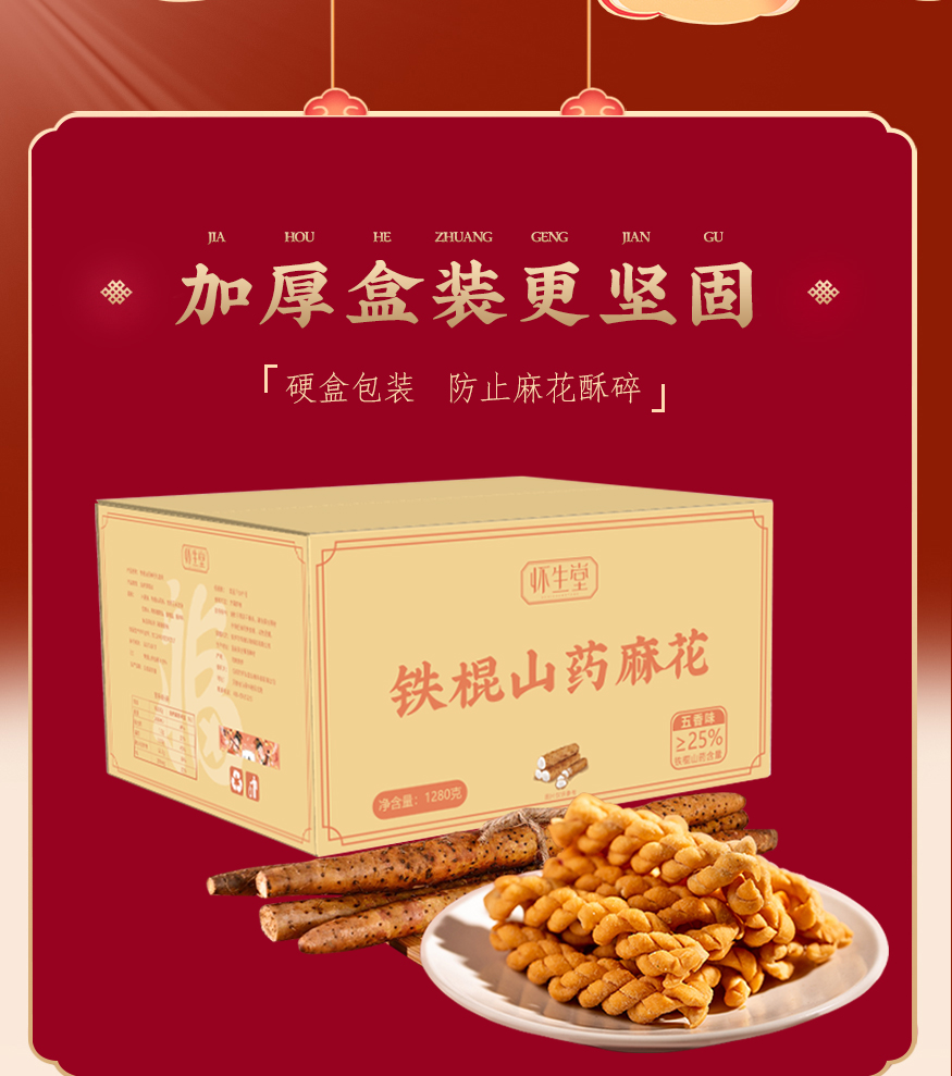怀生堂铁棍山药麻花1280g大箱装 1箱