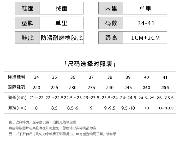 注:收到货如果还未确定留下来,试穿时请在鞋底垫东西哦!如鞋底有脏污和磨损不支持退换的哈!