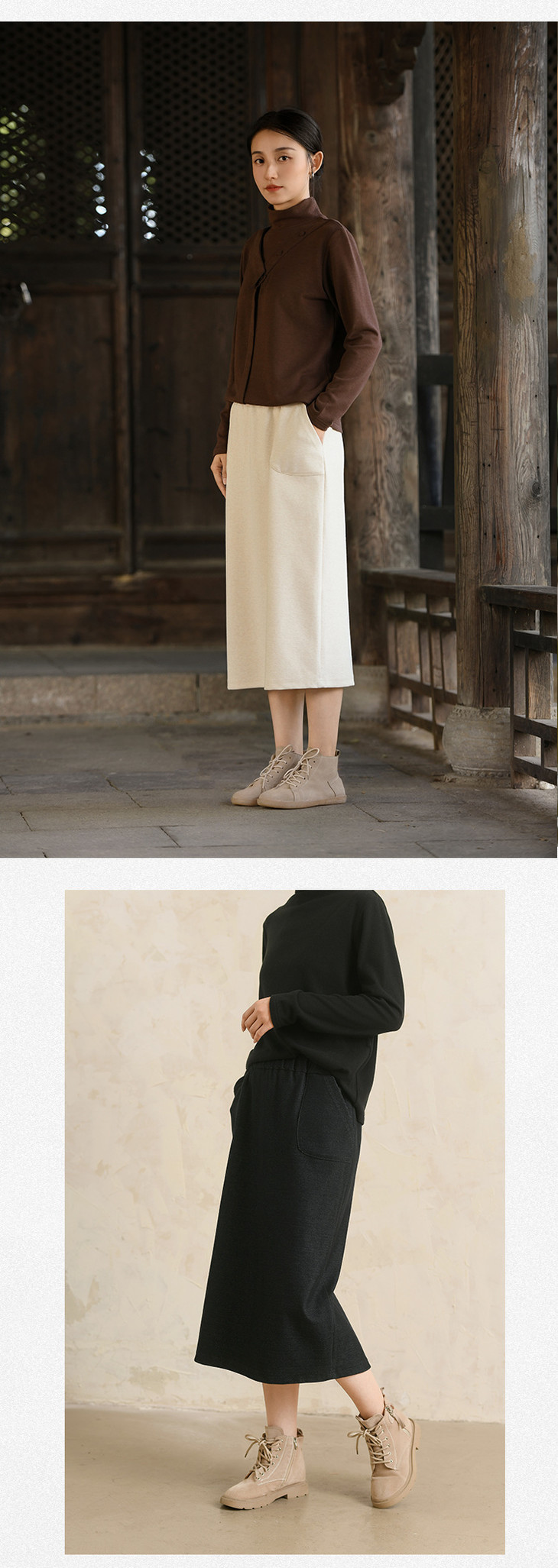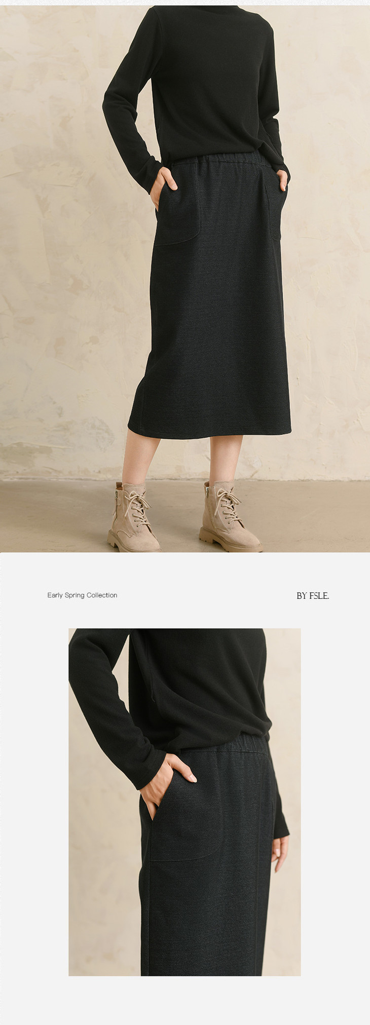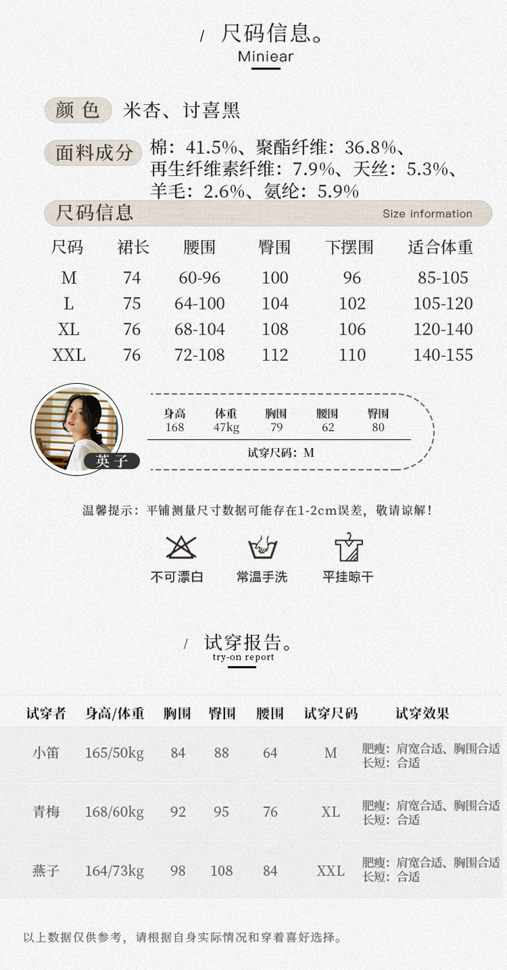 天丝羊毛半身裙,松紧腰纯色中长款a字裙QM-6565