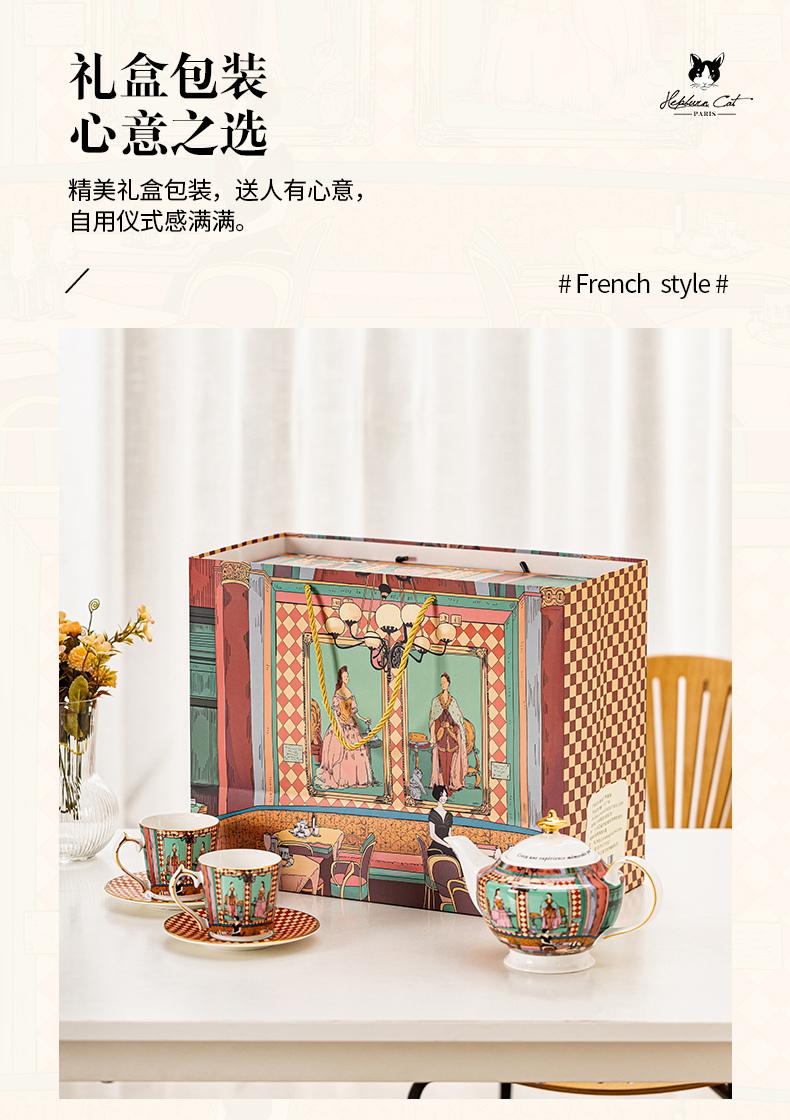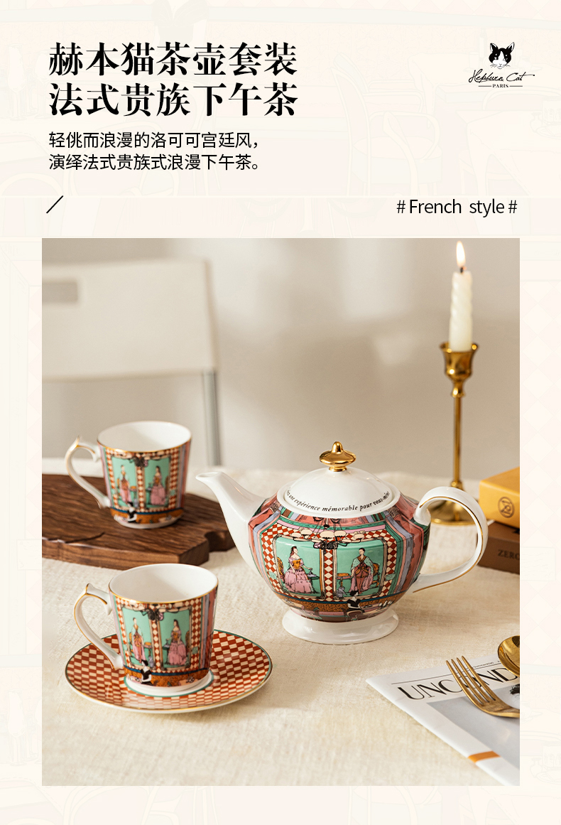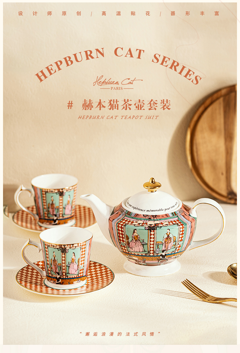 【摩登主妇&赫本猫联名】骨瓷茶壶茶杯咖啡杯碟下午茶精致礼盒