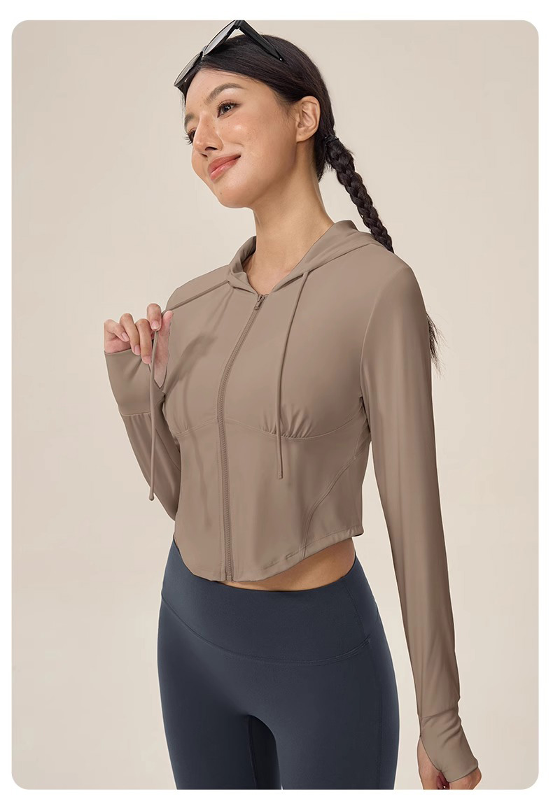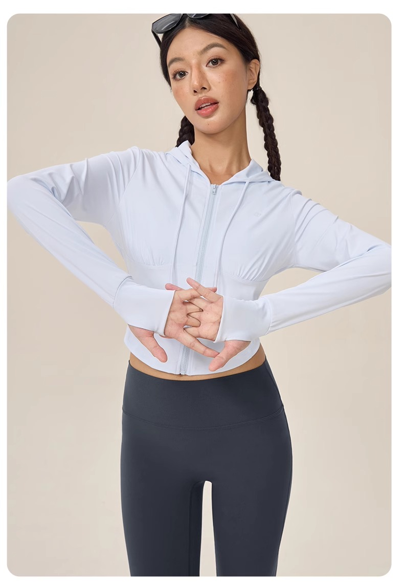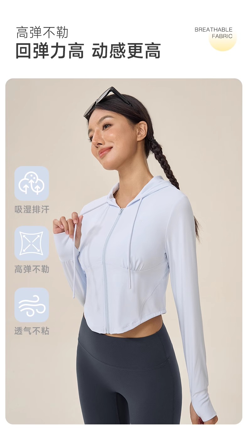 跃牌【欲动春风】系列 莱卡瑜伽外套女秋冬连帽拉链运动开衫42626