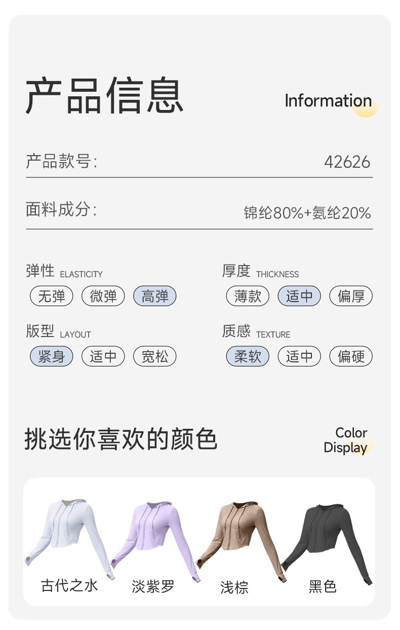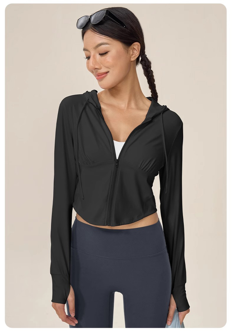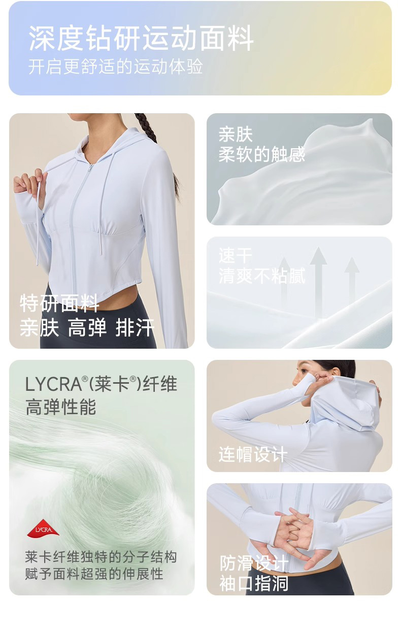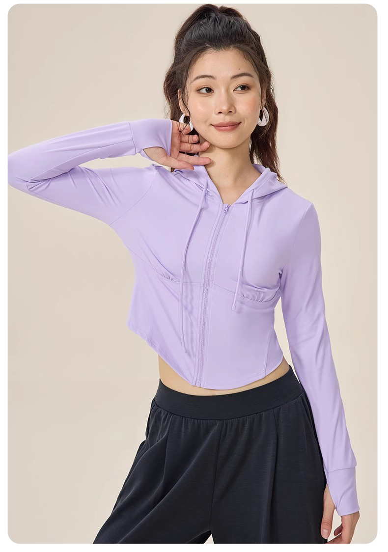 跃牌【欲动春风】系列 莱卡瑜伽外套女秋冬连帽拉链运动开衫42626