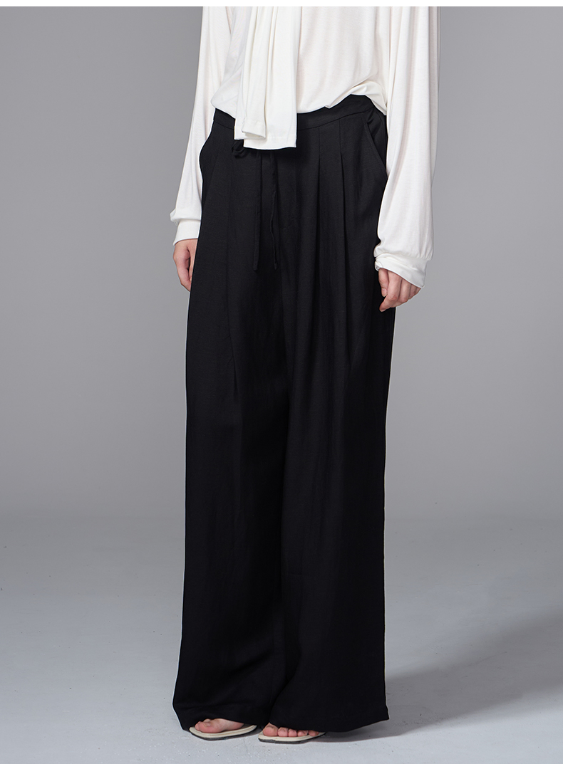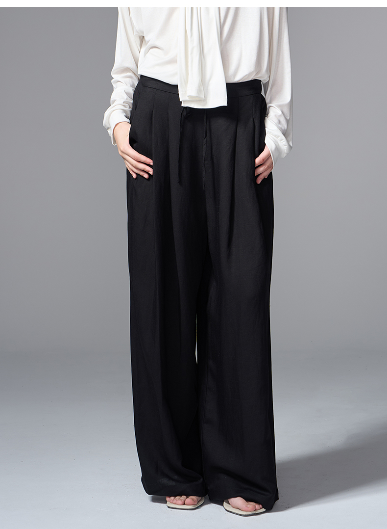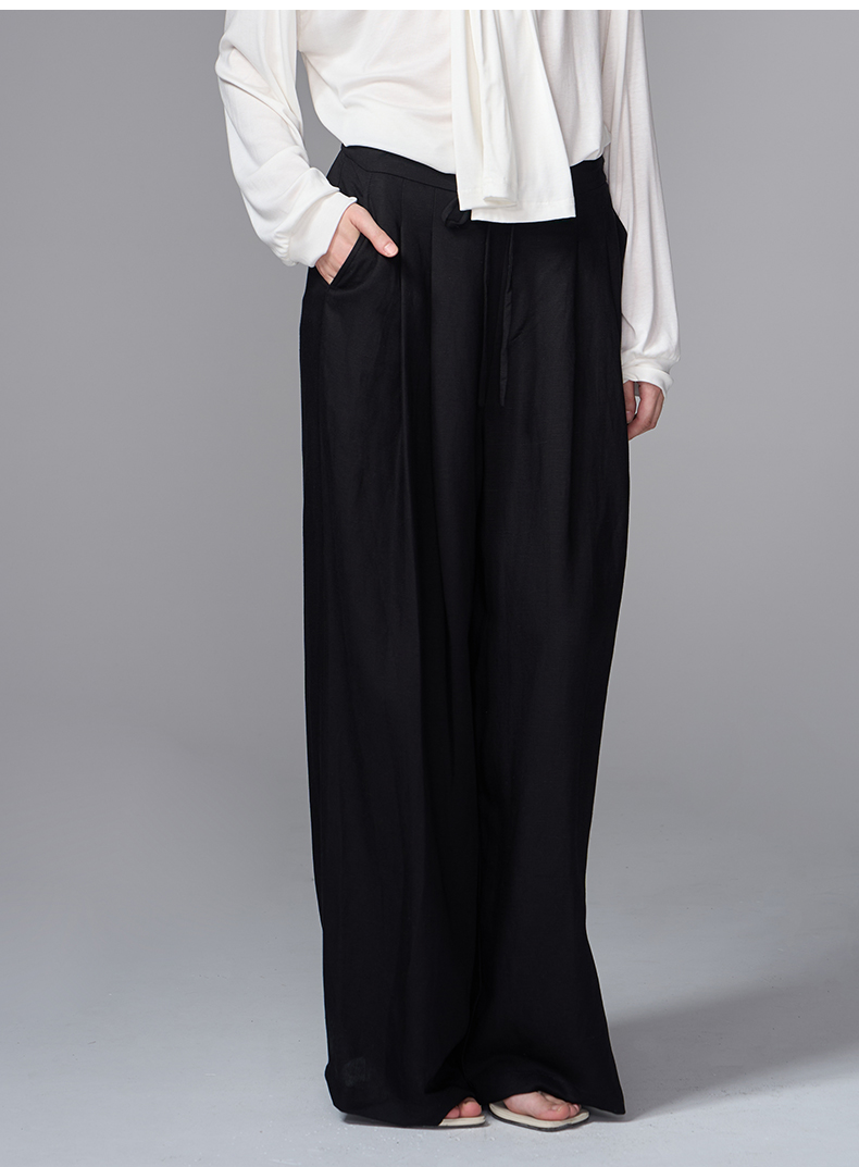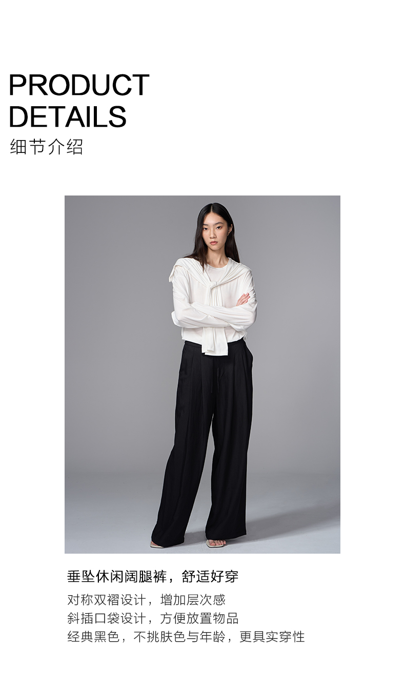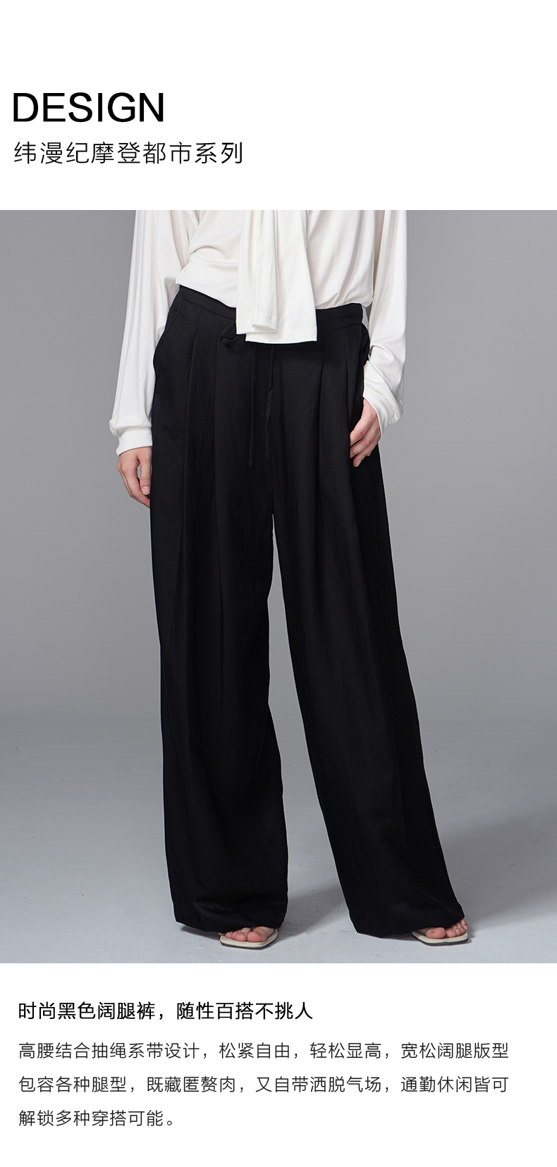 VIMAGE纬漫纪显瘦垂坠感休闲松弛直筒黑色2025秋季新款阔腿裤V2405107