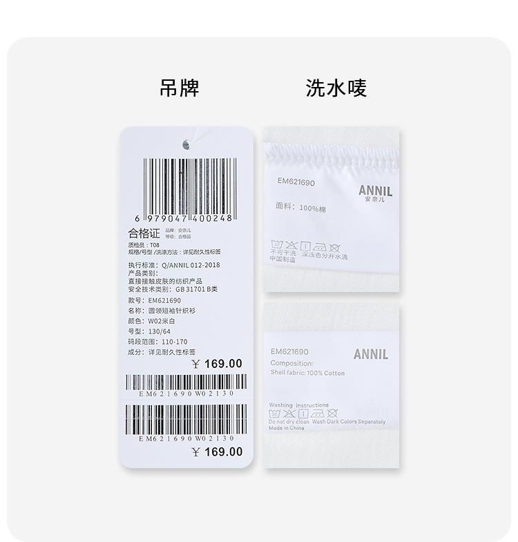 男女童圆领短袖针织衫夏季新款安奈儿童装EM621690