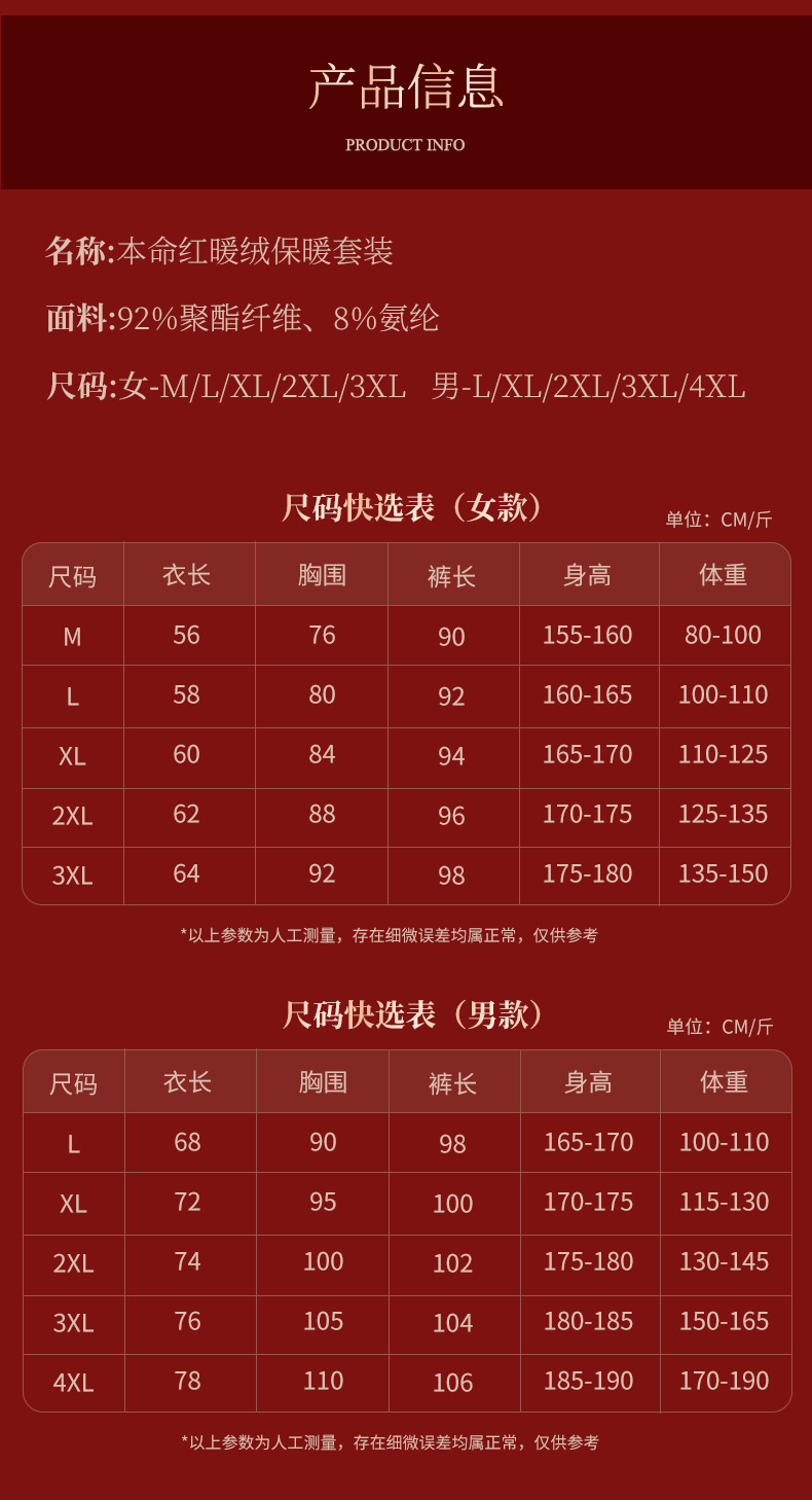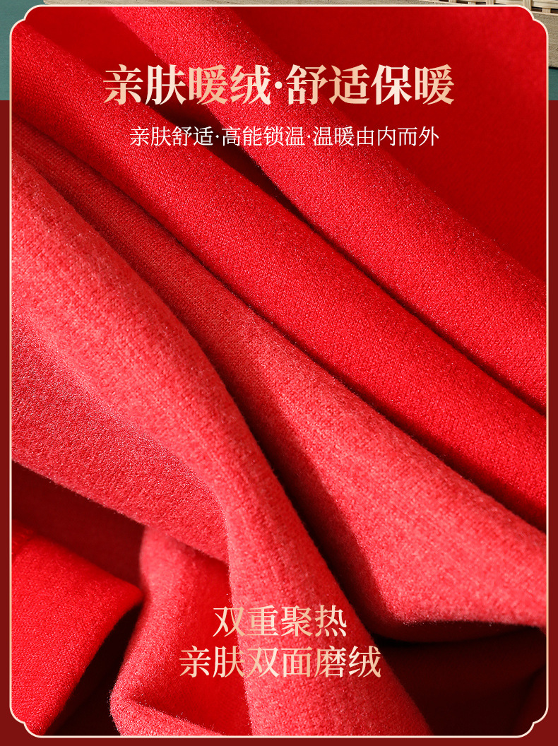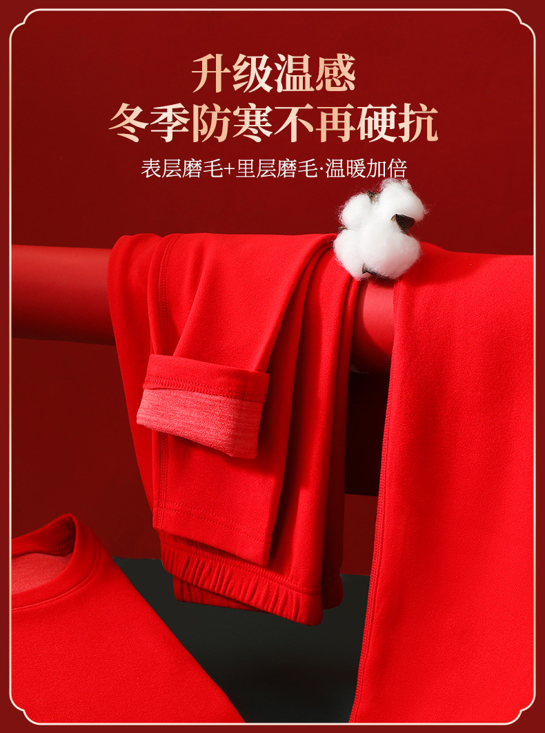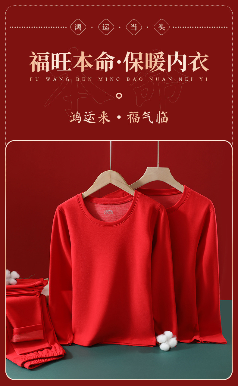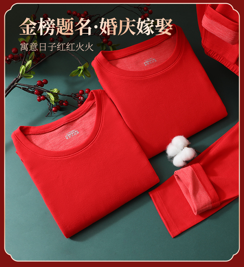 【本命年暖绒!金榜题名婚庆嫁娶保暖套装】羊毛蚕丝情侣款 本命年大红色 舒适保暖 中国红结婚喜庆 秋衣秋裤
