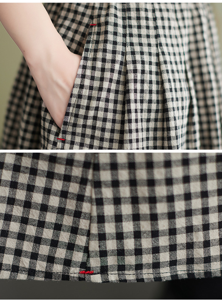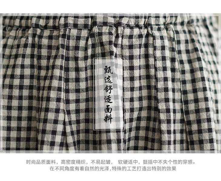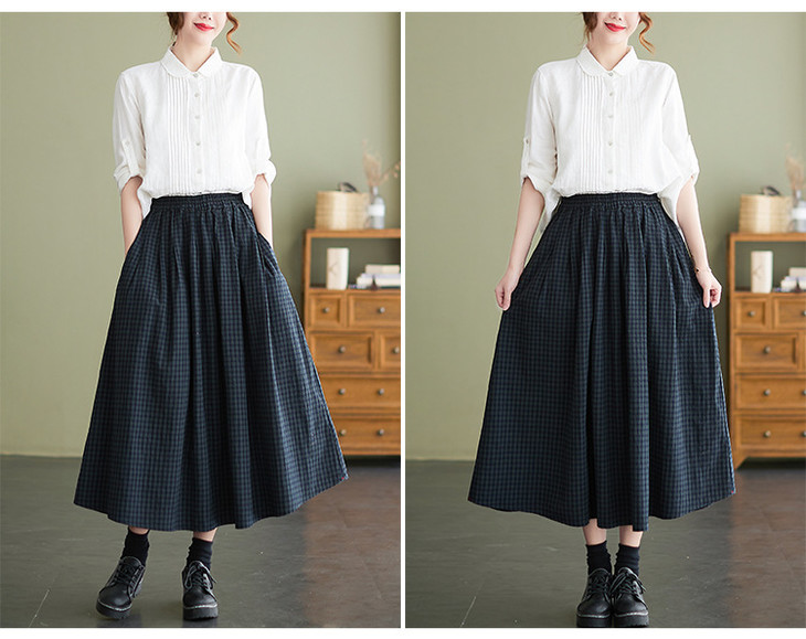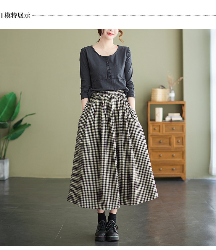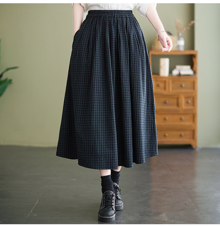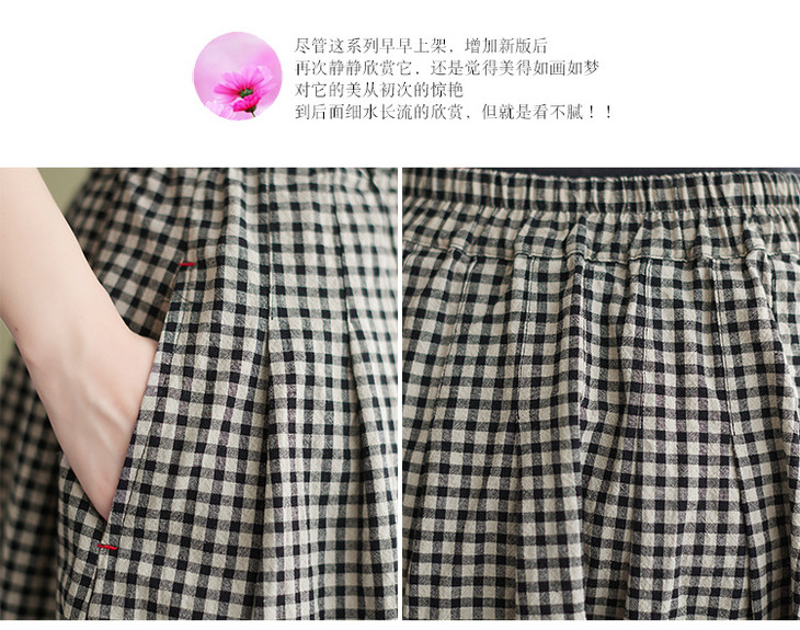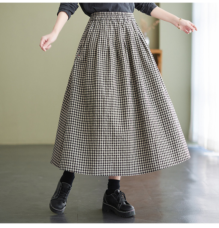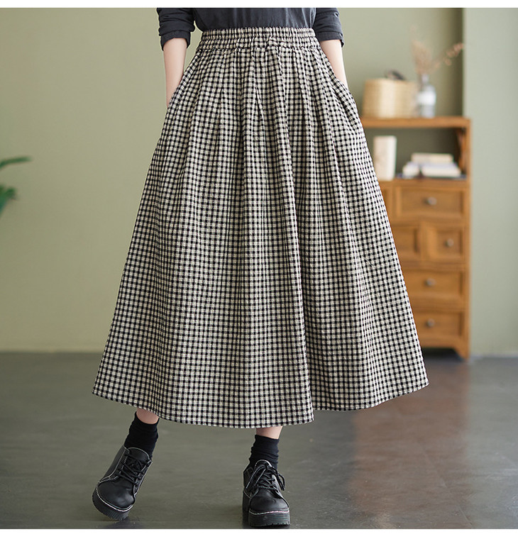 GYH 8281复古棉麻高腰格子半身裙