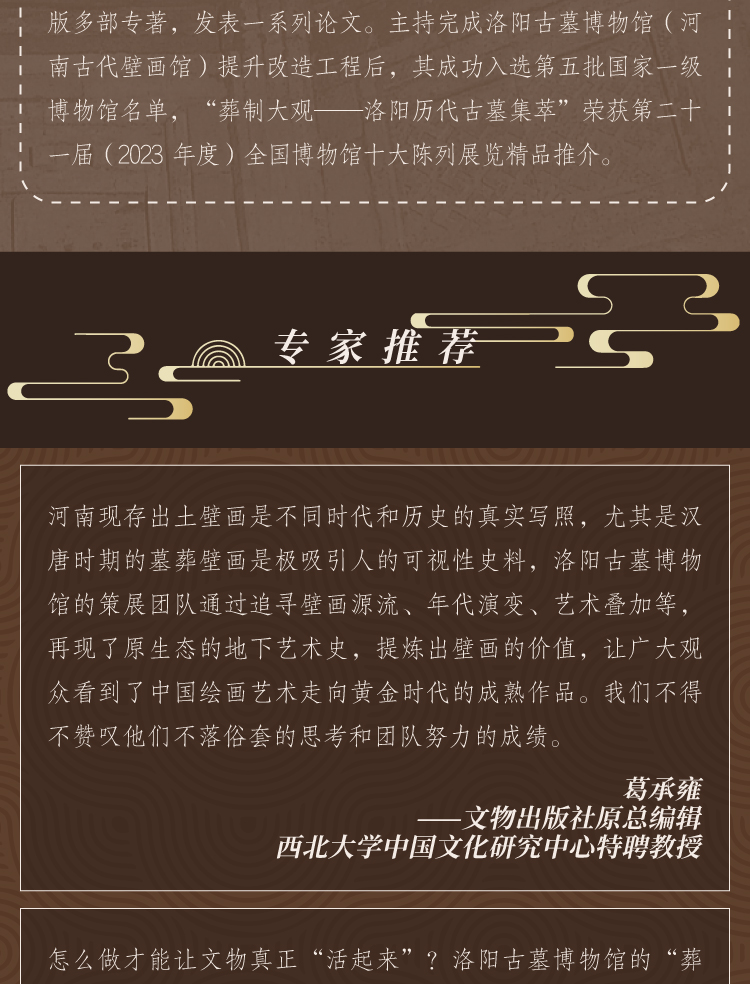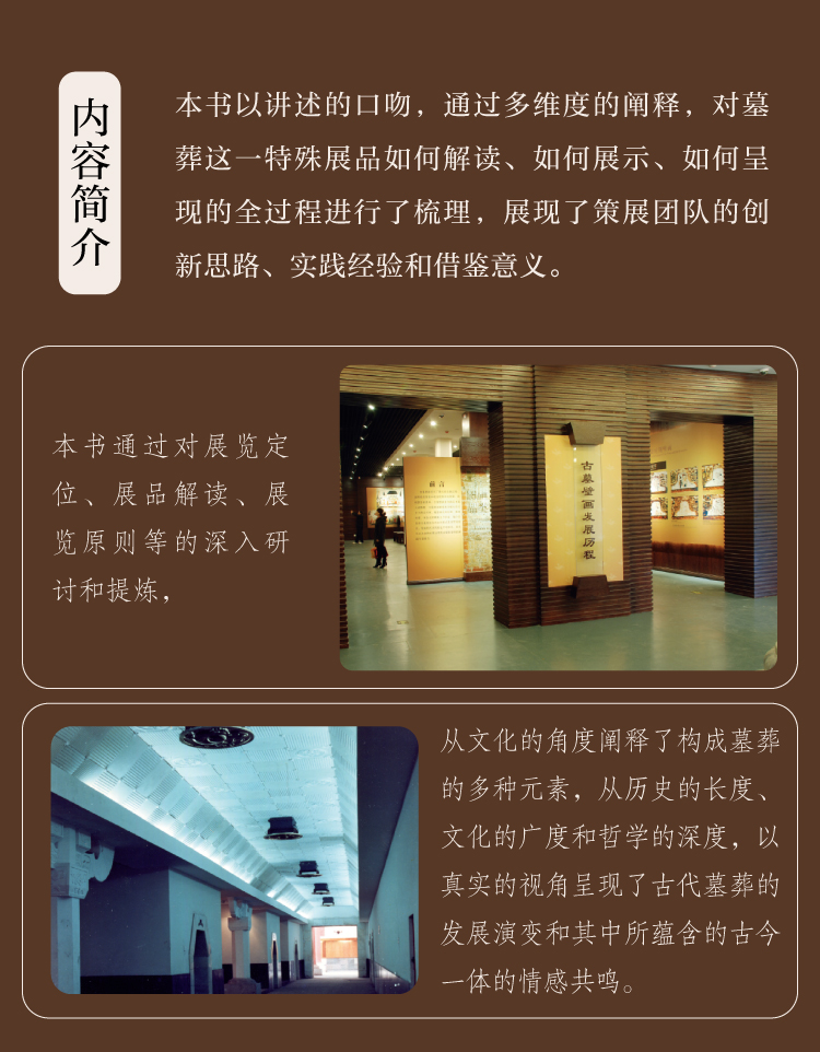 怎么做才能让文物真正“活起来”?洛阳古墓博物馆的“葬制大观——洛阳历代古墓集萃”为我们提供了一个示范性案例。古人与今人、死者与生者、礼制与生活、贵族与平民在展览中有机联系起来、和谐统一起来,这是策展团队辛勤汗水与深邃思想的结晶。本书描述了如何用专业手段实现通俗效果的思考与实践,对于高校文博人才培养的教与学,具有重要的理论价值和现实指导意义。