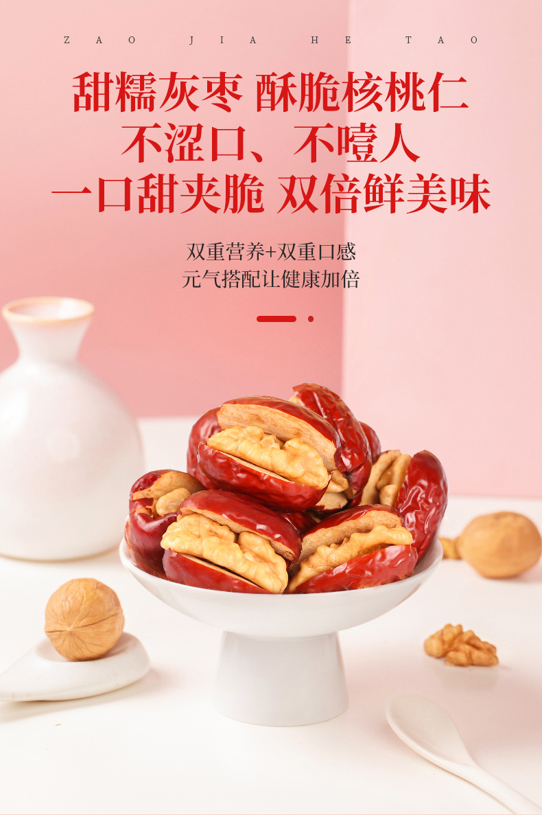 软糯酥脆,口感分明【多种营养!日常轻滋补】老少皆宜,枣夹核桃红枣夹核桃独立包装即食休闲零食。ha