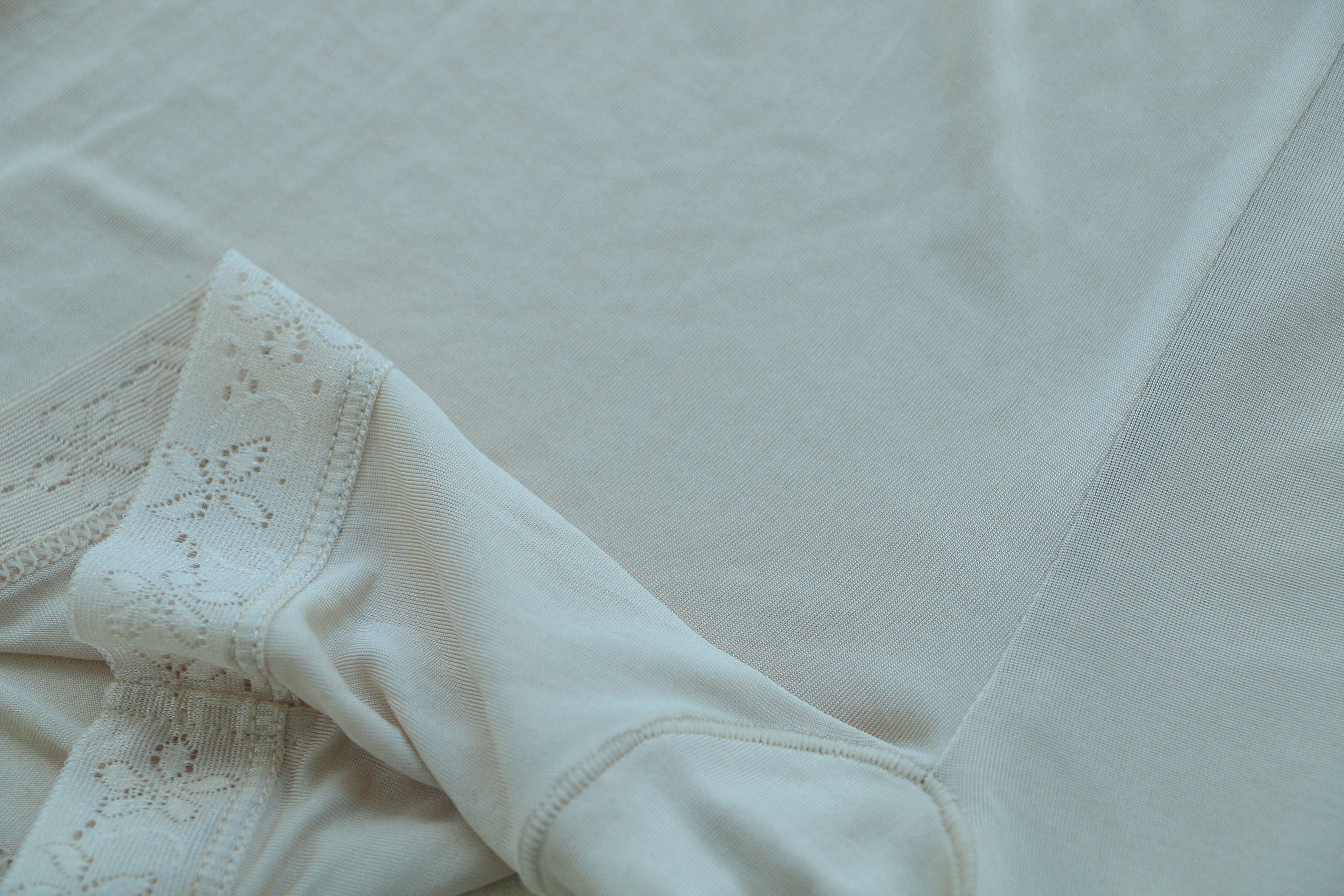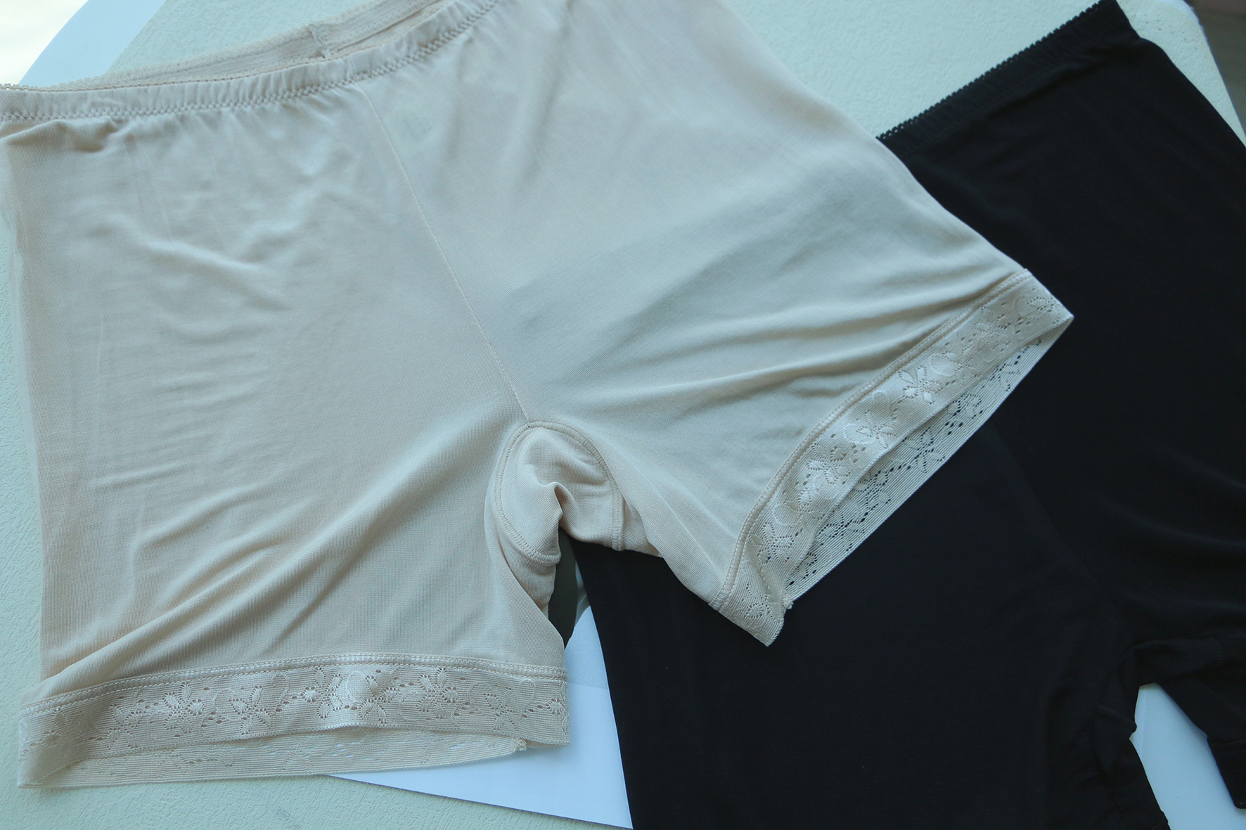 经典版型的真丝打底裤,长度到大腿根下面一点,轻薄凉快,透气柔软,且修身但不粘身。