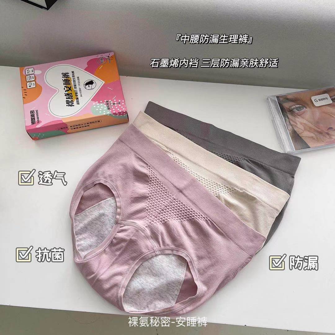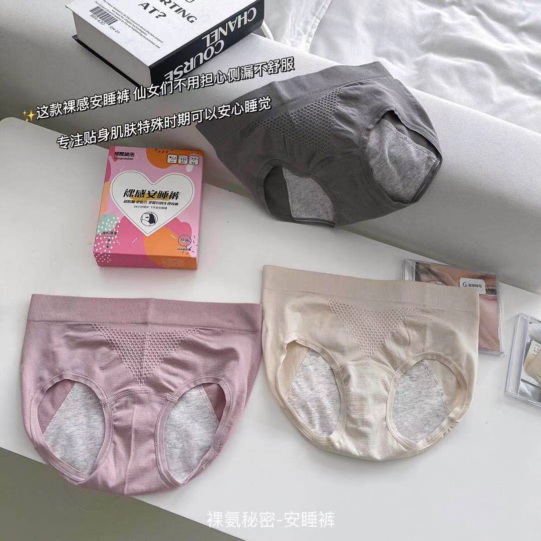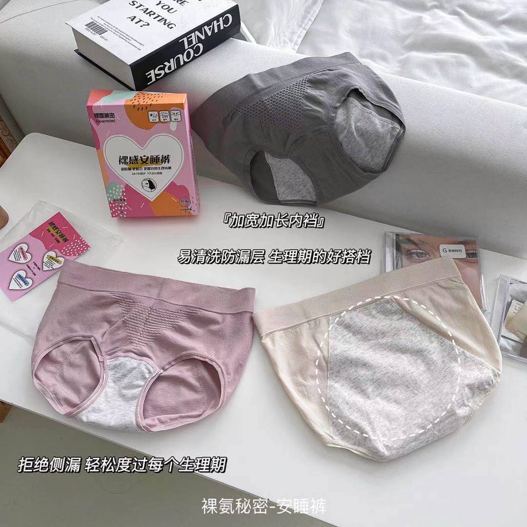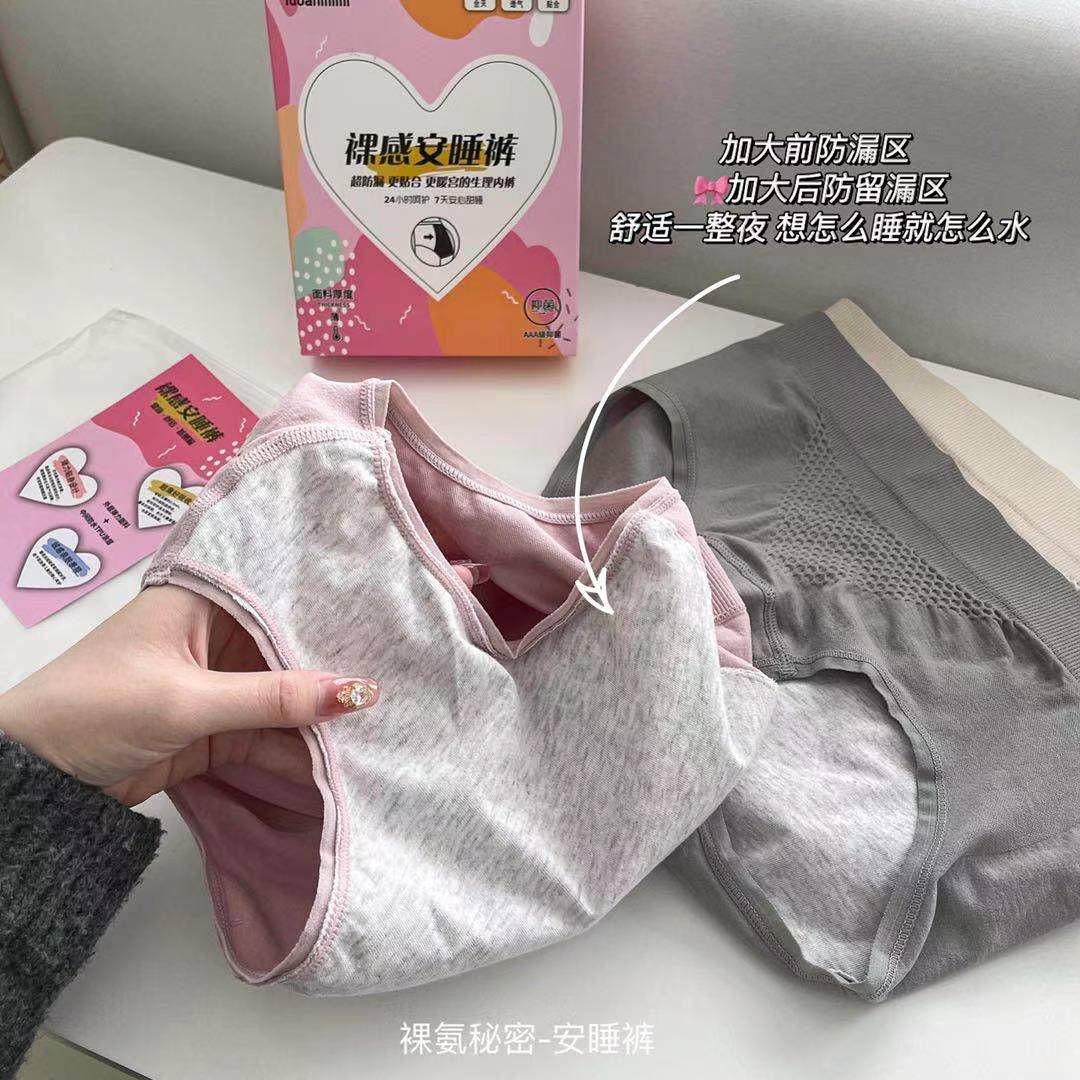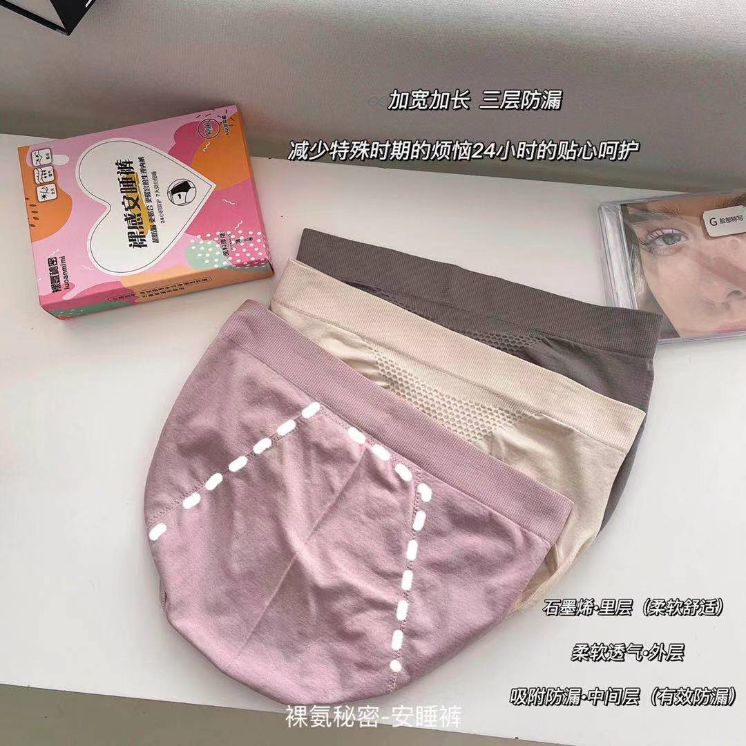 【3条礼盒装!纯棉生理期内裤】SSEMMY新款美作甜睡裤 月经内裤 经期卫生大姨妈防侧漏防尴尬 纯棉生理期内裤女-QQ