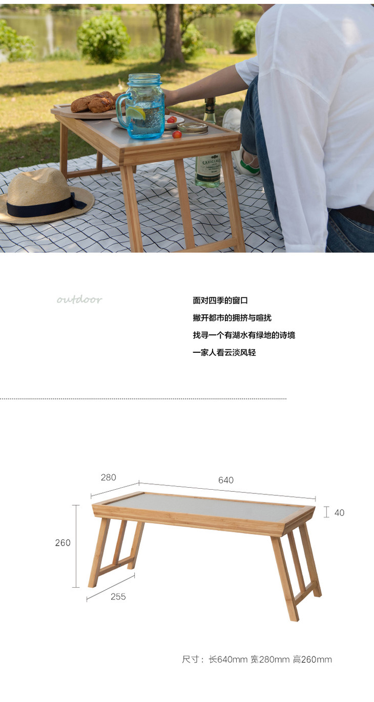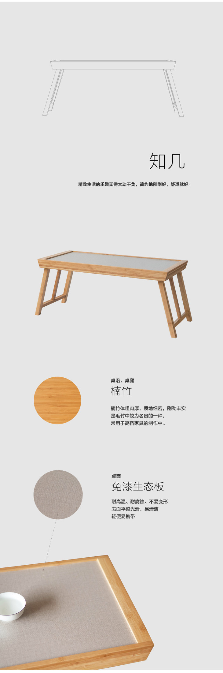 竹加 竹制知几折叠桌 餐桌电脑桌飘窗桌