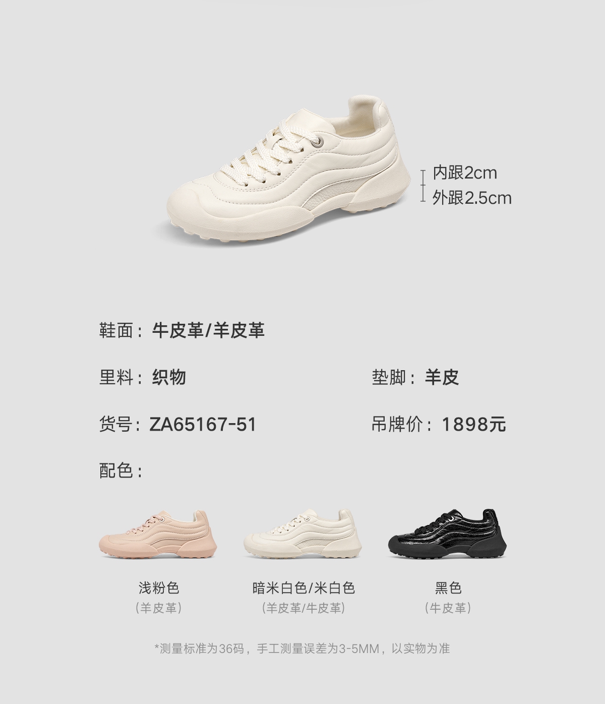 [棉花糖]ZSAZSAZSU莎莎苏 2025年春新款内增高运动休闲芭蕾舞鞋超软小白鞋女