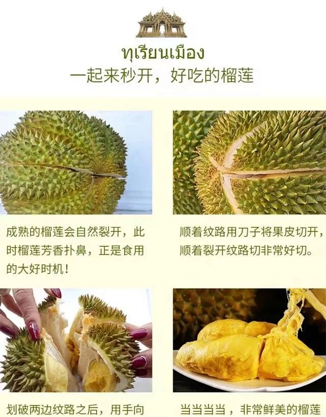 1、收到榴莲的客户不要着急开果,先看说明书,判断榴莲已熟再开。不懂生熟需咨询客服,生开榴莲不理赔。
