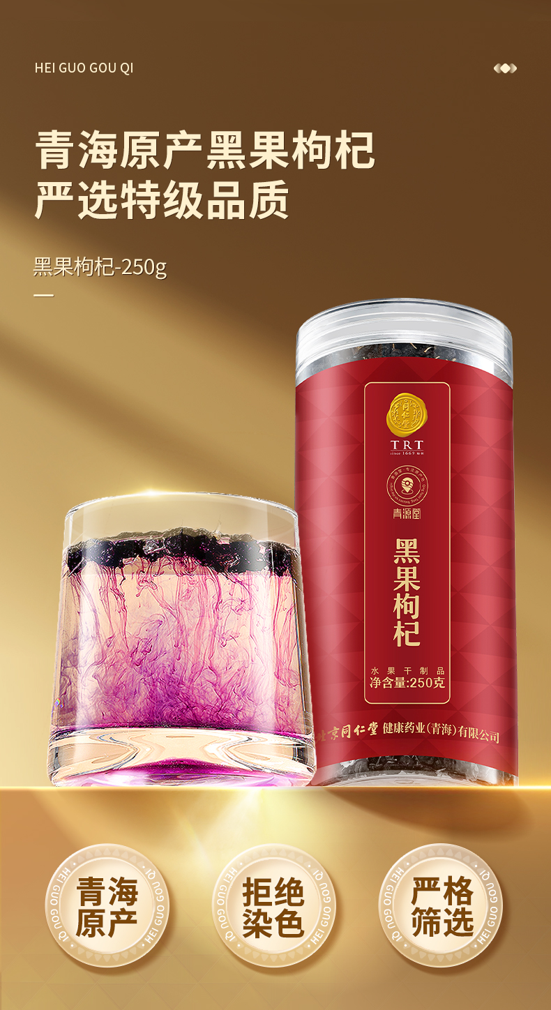 【168元任选3件】【正宗同仁堂品牌】北京同仁堂 青源堂 黑枸杞250克 果粒饱满 柄短肉厚 持久冲泡 SY