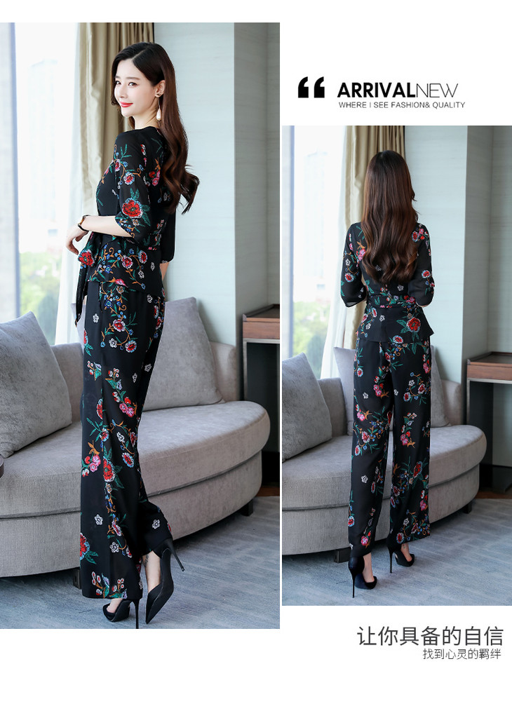 CQ-QYE9565印花韩版优雅时尚拼接套装