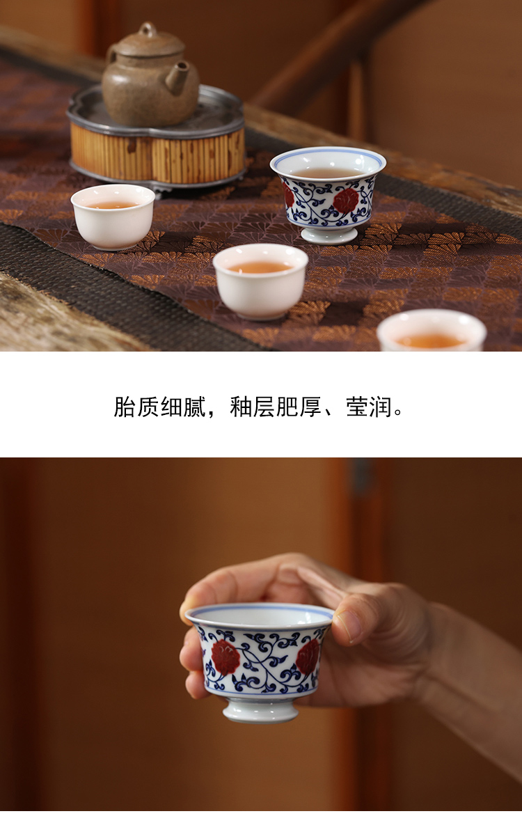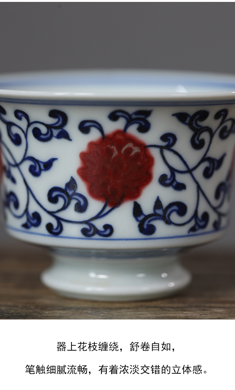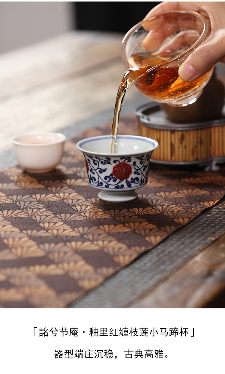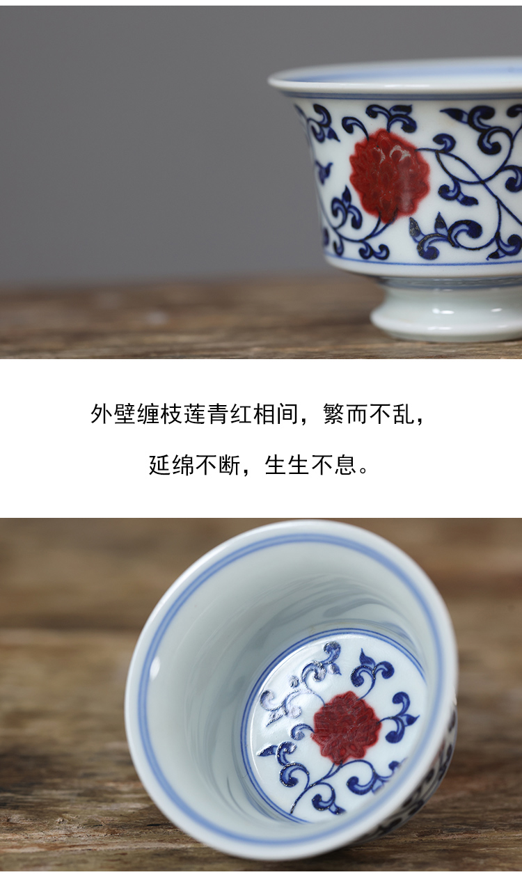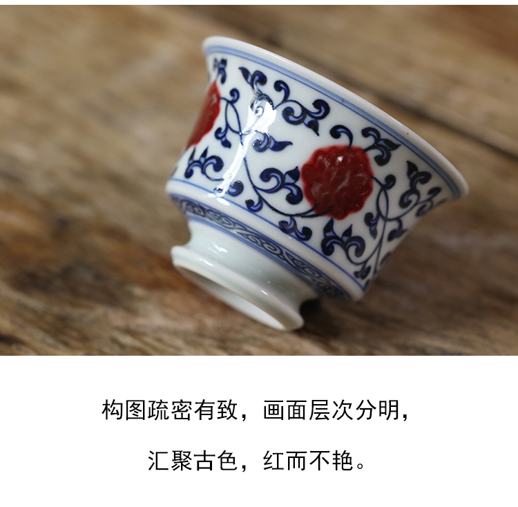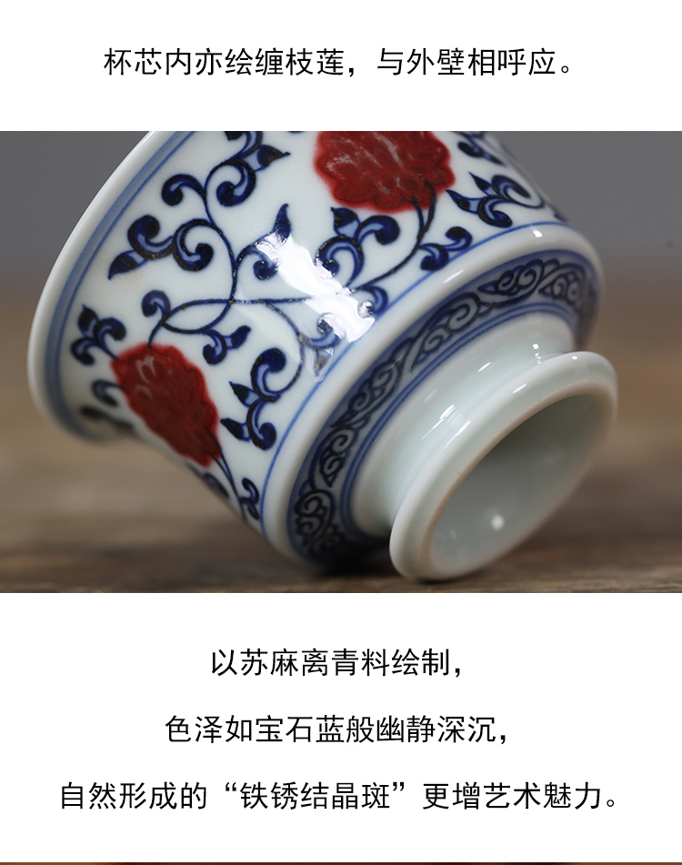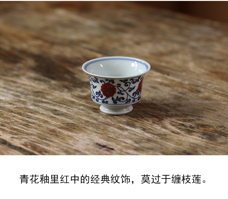 茶香记 60ml詺兮节庵釉里红缠枝莲小马蹄杯青花手绘茶杯主人杯