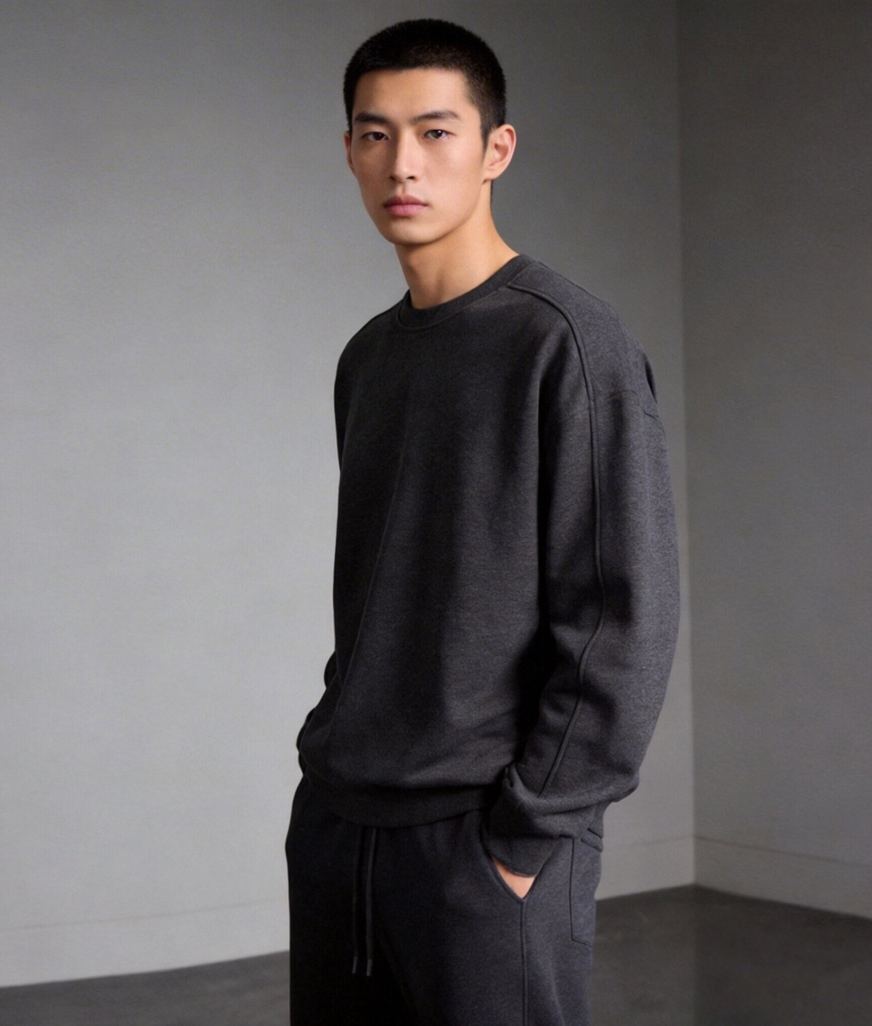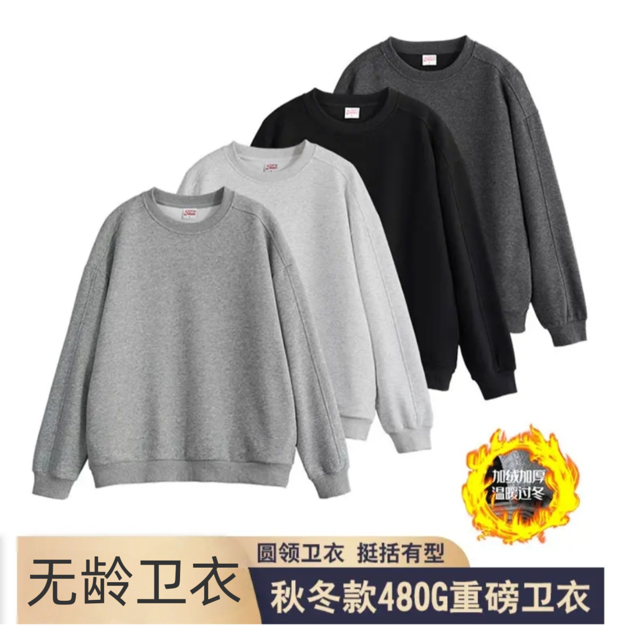 【减压圆领卫衣】400g男士2026春新品圆领卫衣套装上衣松弛老钱风减压无龄款