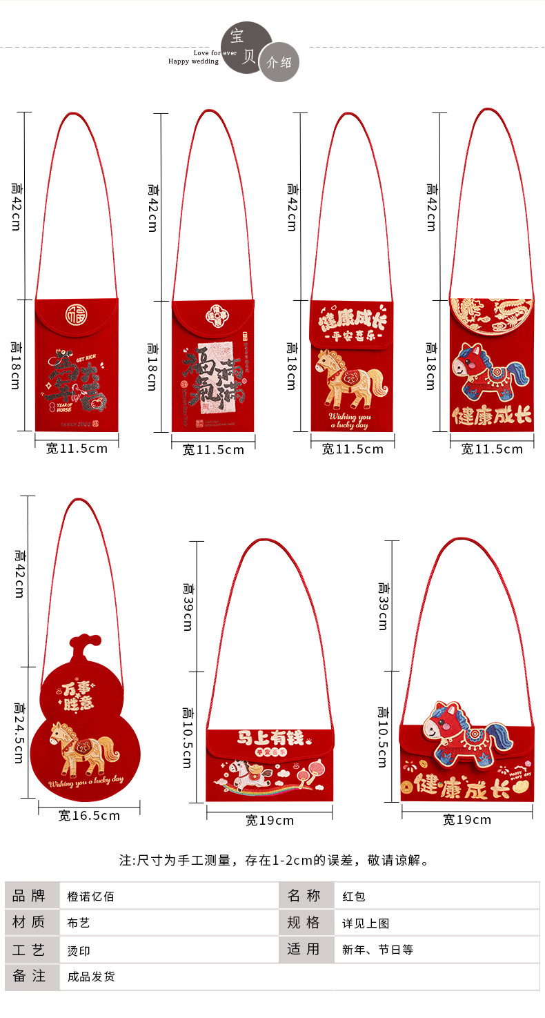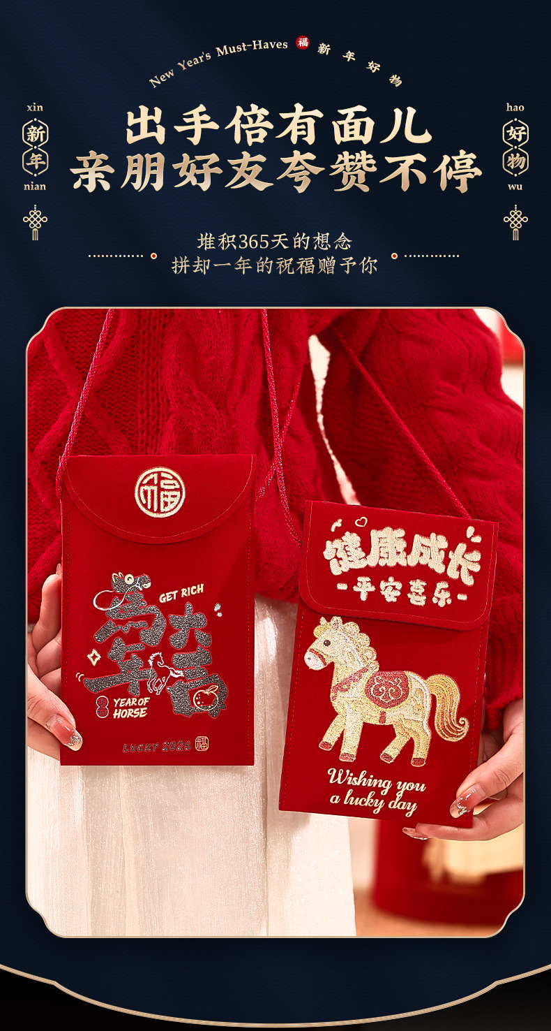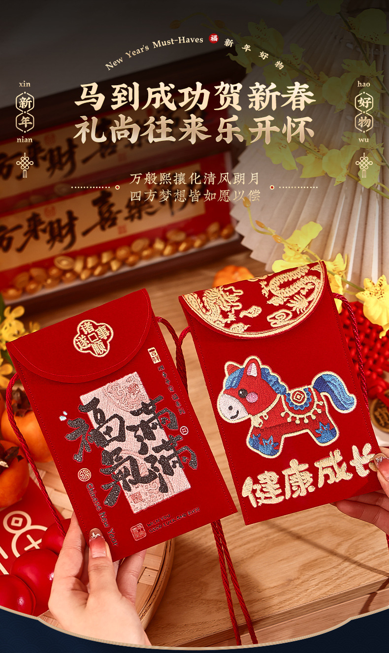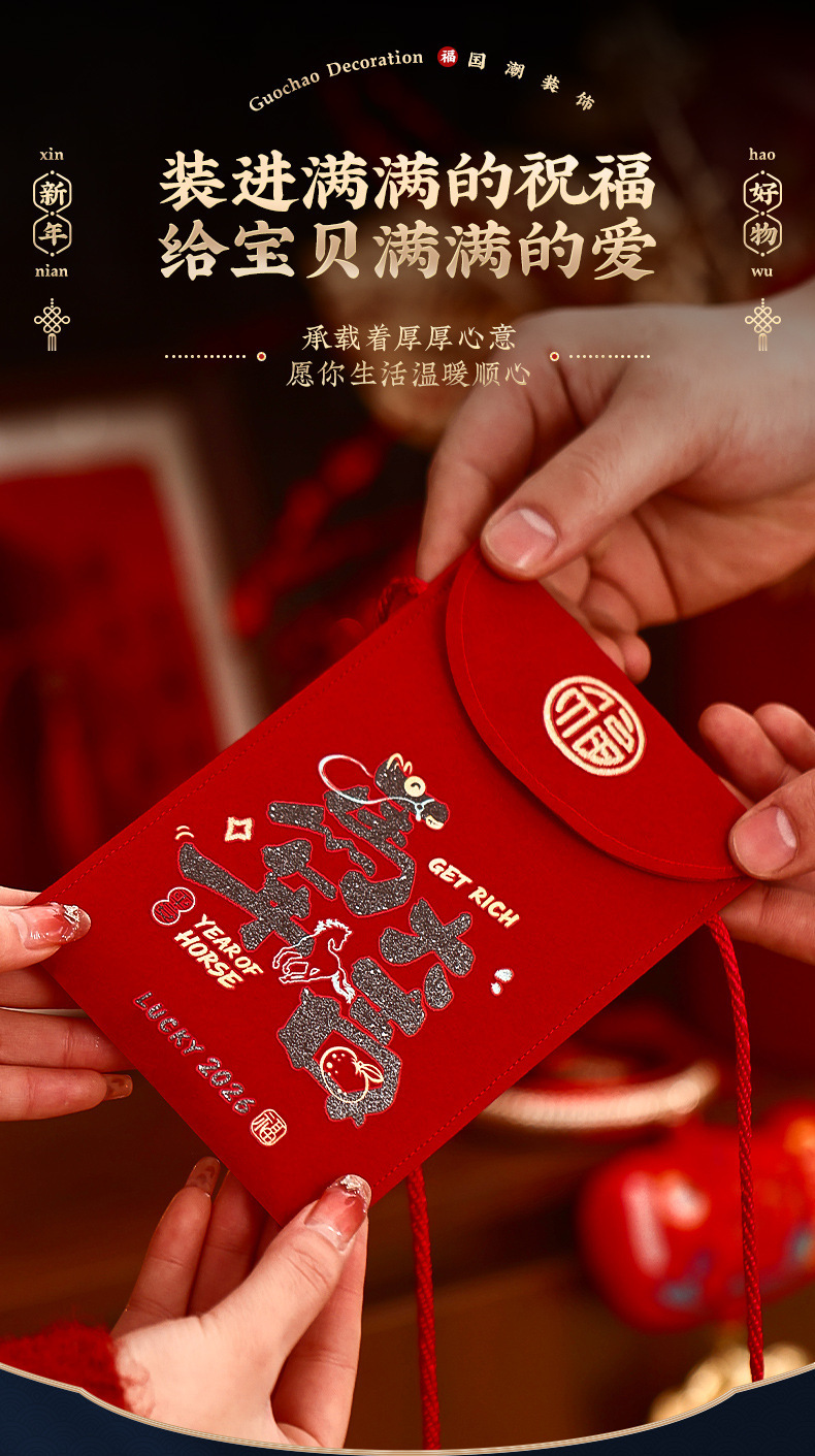 【马到成功贺新春❗礼尚往来乐开怀】马年布艺红包袋2026新款高端万元利是封春节过年儿童拜年压岁钱包。rf